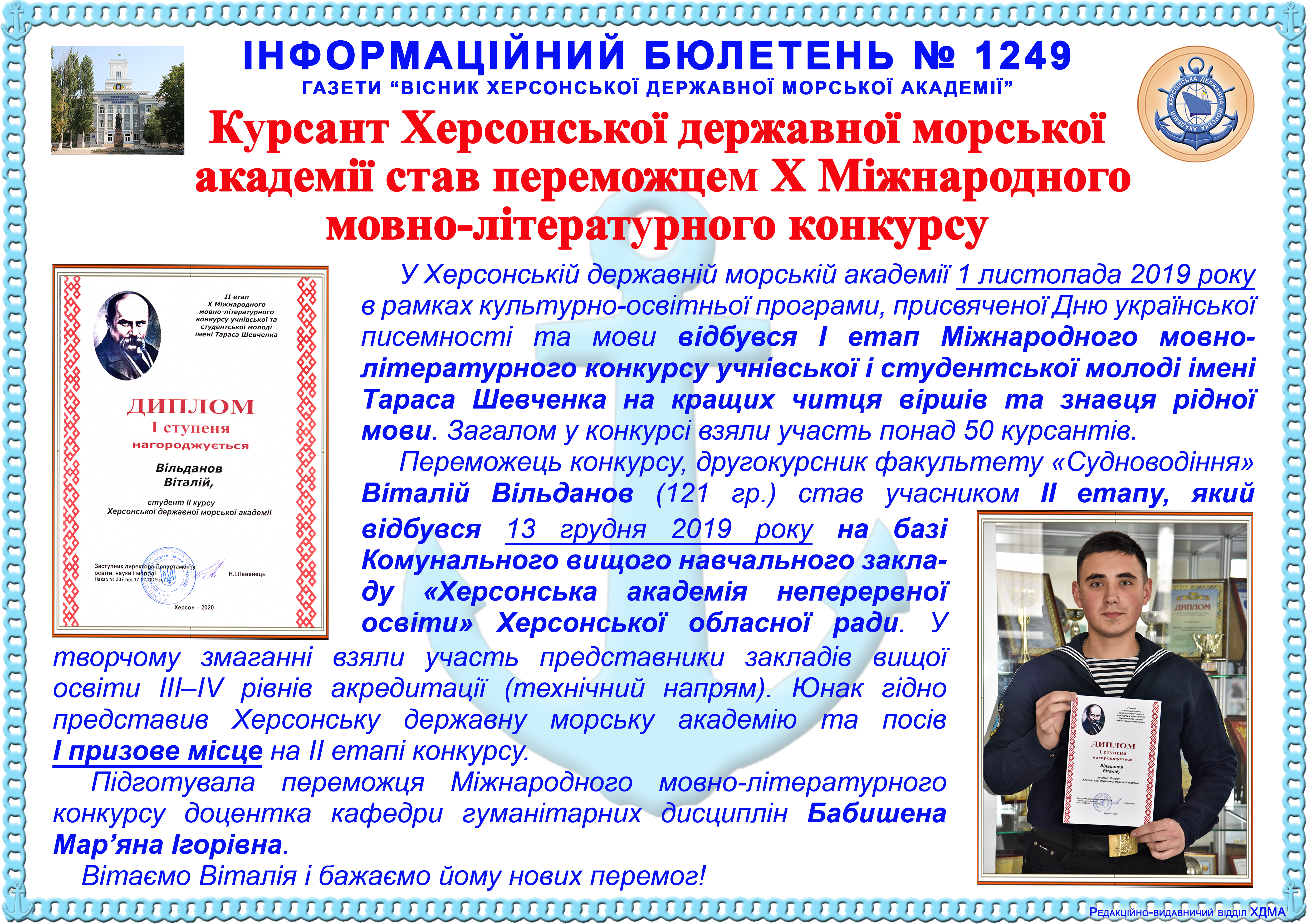 Title: Інформаційний бюлетень № 1249 Курсант Херсонської державної морської академії став переможцем X Міжнародного мовно-літературного конкурсу
