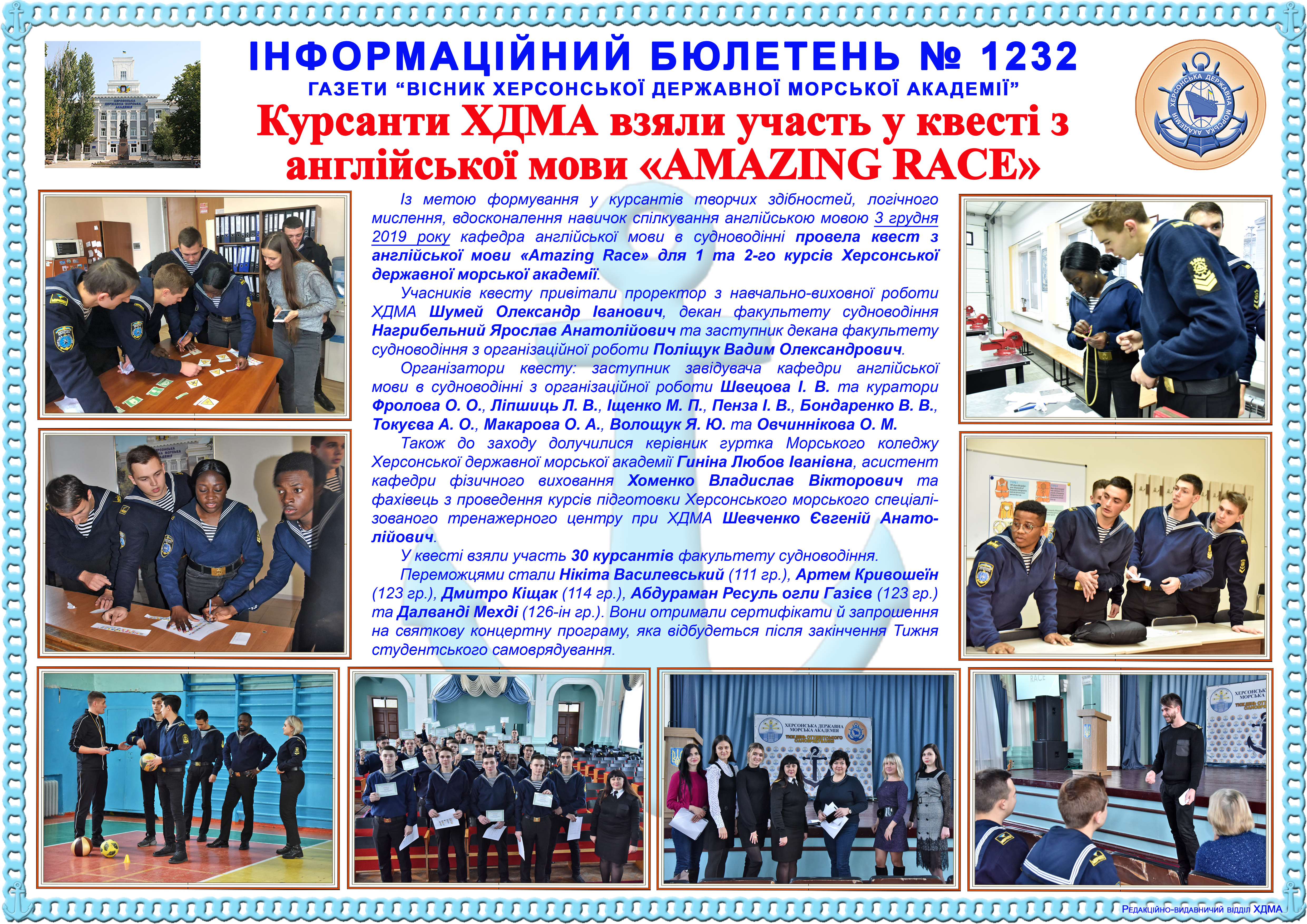 Title: Інформаційний бюлетень № 1232 Курсанти ХДМА взяли участь у квесті з англійської мови «AMAZING RACE»