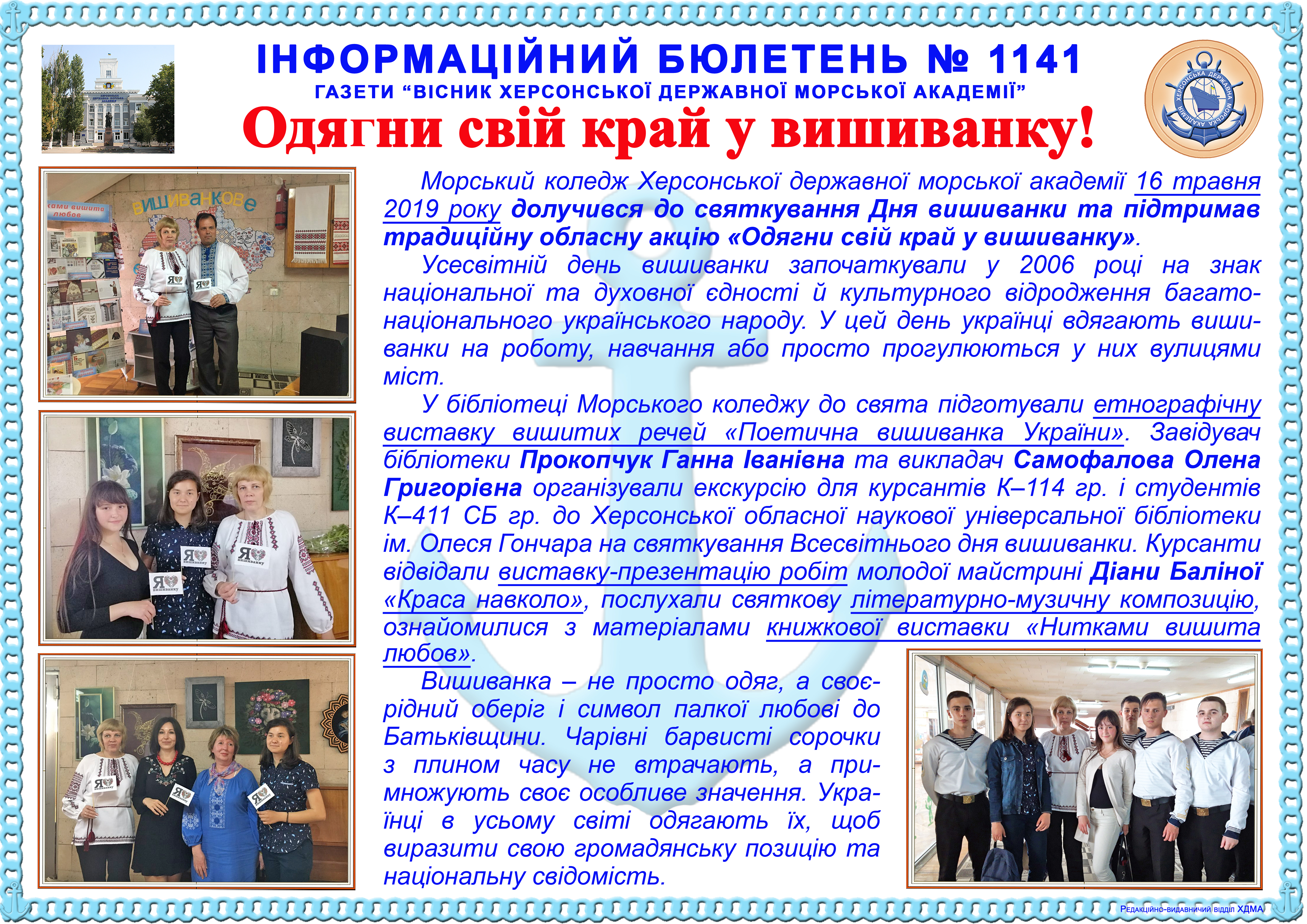 http://repnew.ksma.ks.ua/jspui/handle/123456789/1851| Title: | Інформаційний бюлетень № 1141 Одягни свій край у вишиванку! |