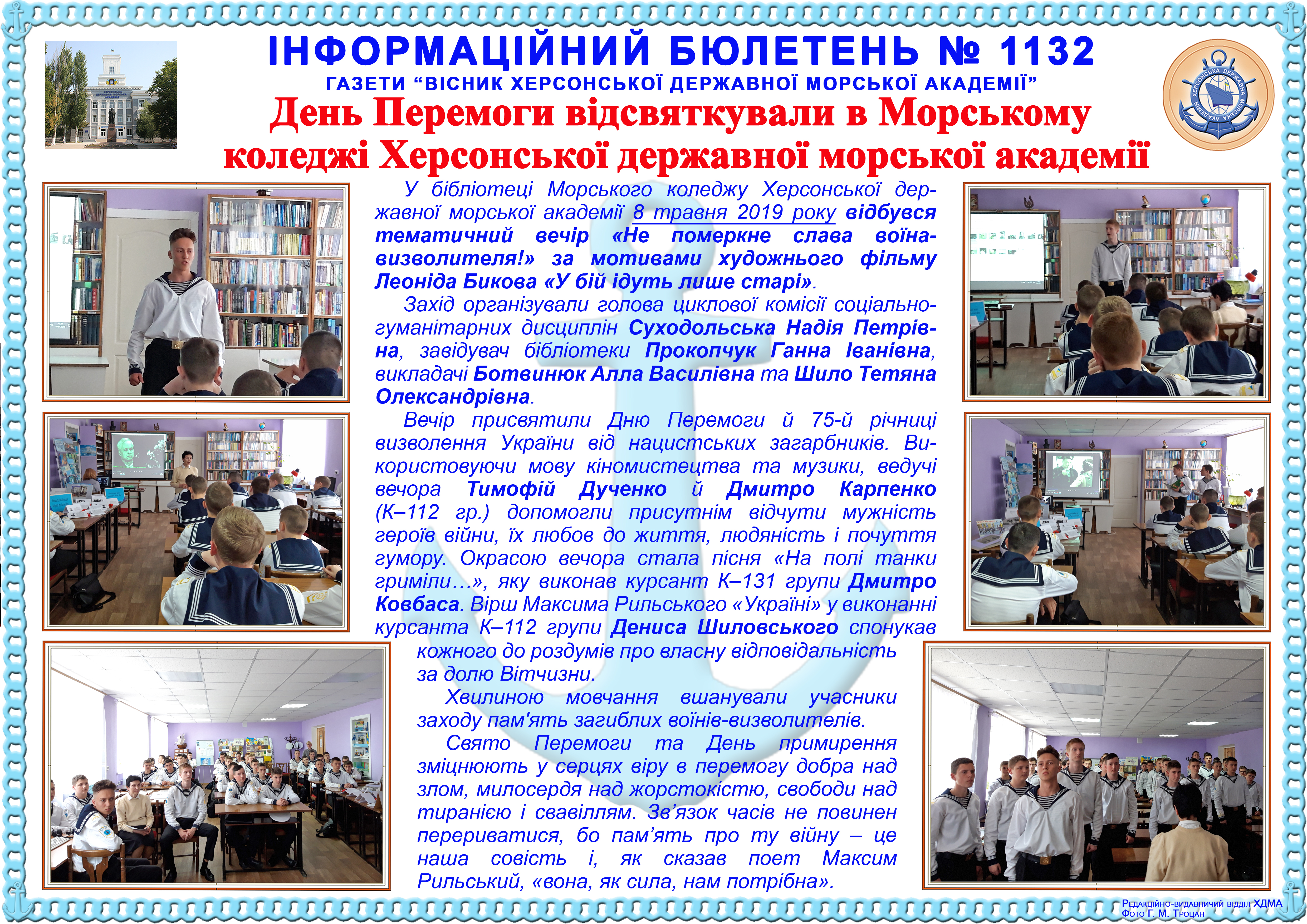http://repnew.ksma.ks.ua/jspui/handle/123456789/1857| Title: | Інформаційний бюлетень № 1132 День Перемоги відсвяткували в Морському коледжі Херсонської державної морської академії |