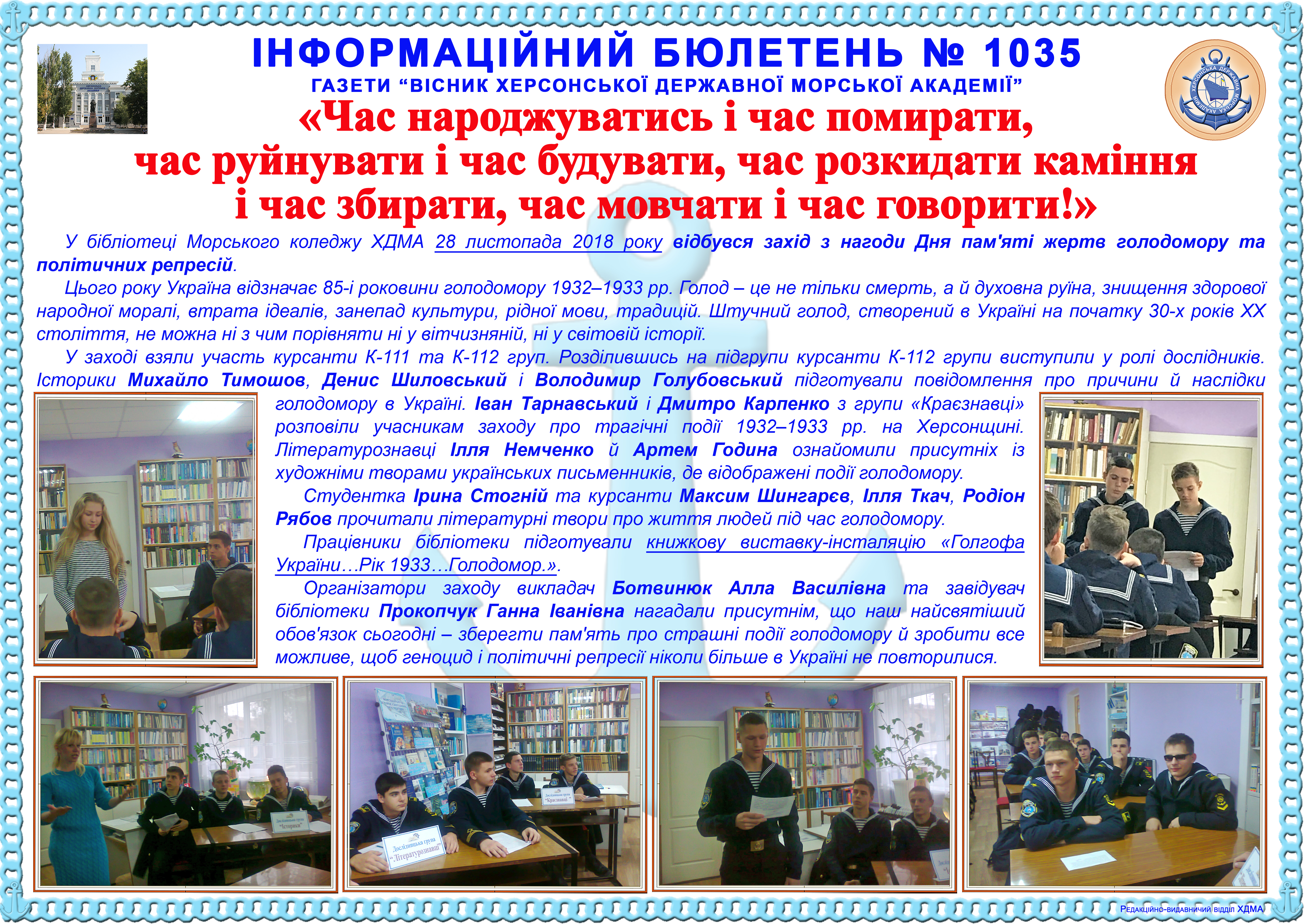 http://repnew.ksma.ks.ua/jspui/handle/123456789/2012| Title: | Інформаційний бюлетень № 1035 «Час народжуватись і час помирати, час руйнувати і час будувати, час розкидати каміння і час збирати, час мовчати і час говорити!» |
