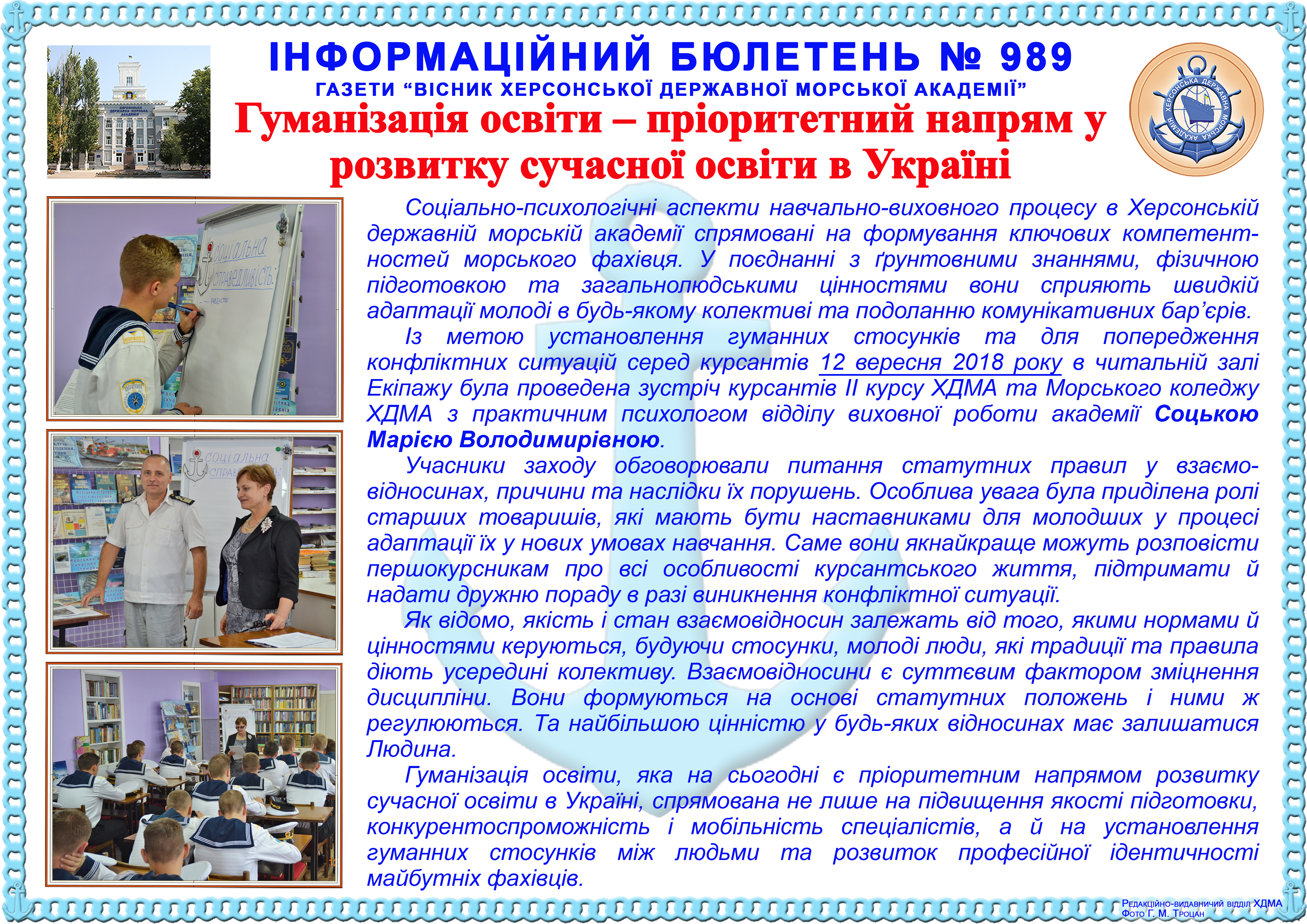 http://repnew.ksma.ks.ua/jspui/handle/123456789/2056| Title: | Інформаційний бюлетень № 989 Гуманізація освіти – пріоритетний напрям у розвитку сучасної освіти в Україні |