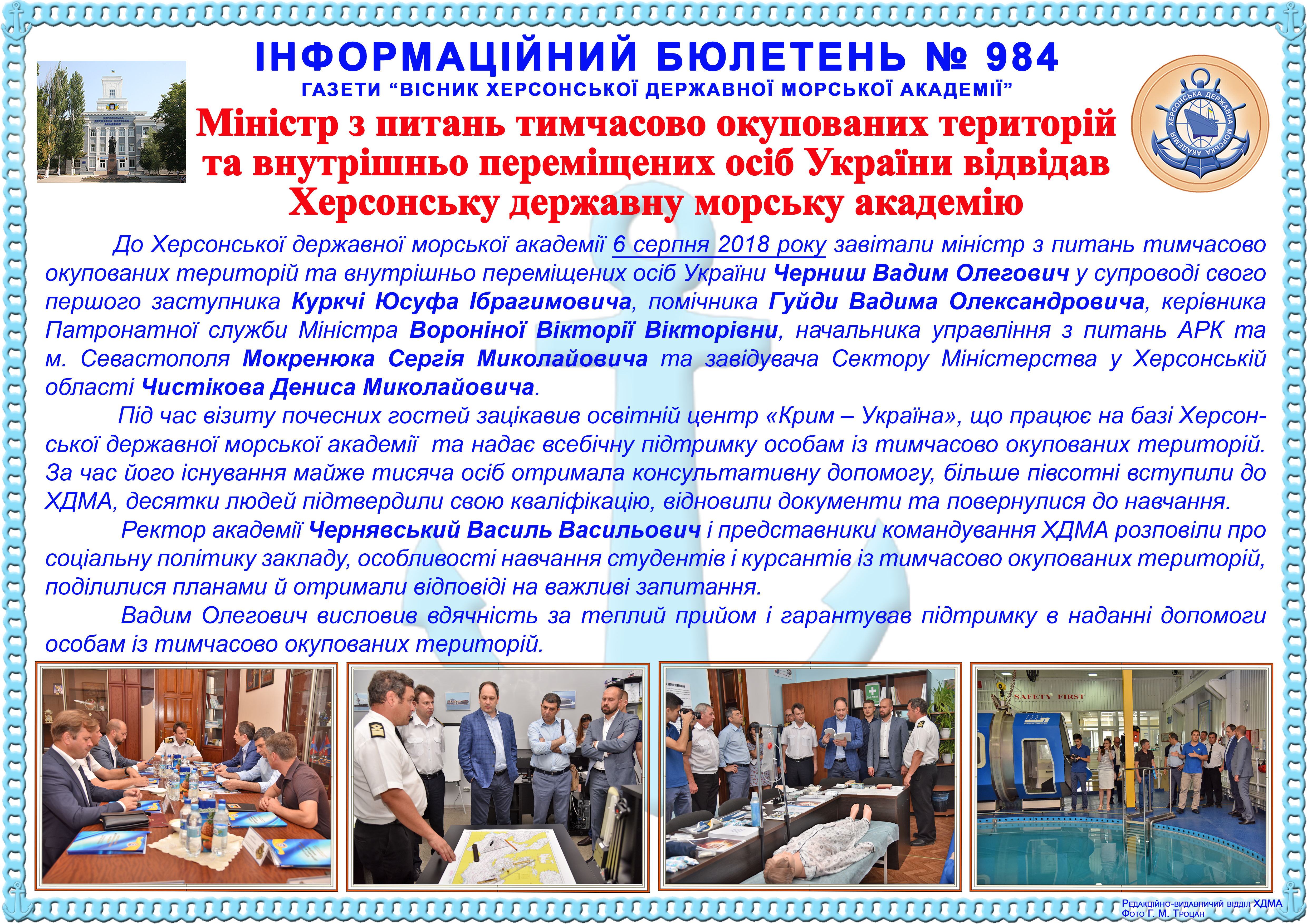 Title: Інформаційний бюлетень № 984 Міністр з питань тимчасово окупованих територій та внутрішньо переміщених осіб України відвідав Херсонську державну морську академію