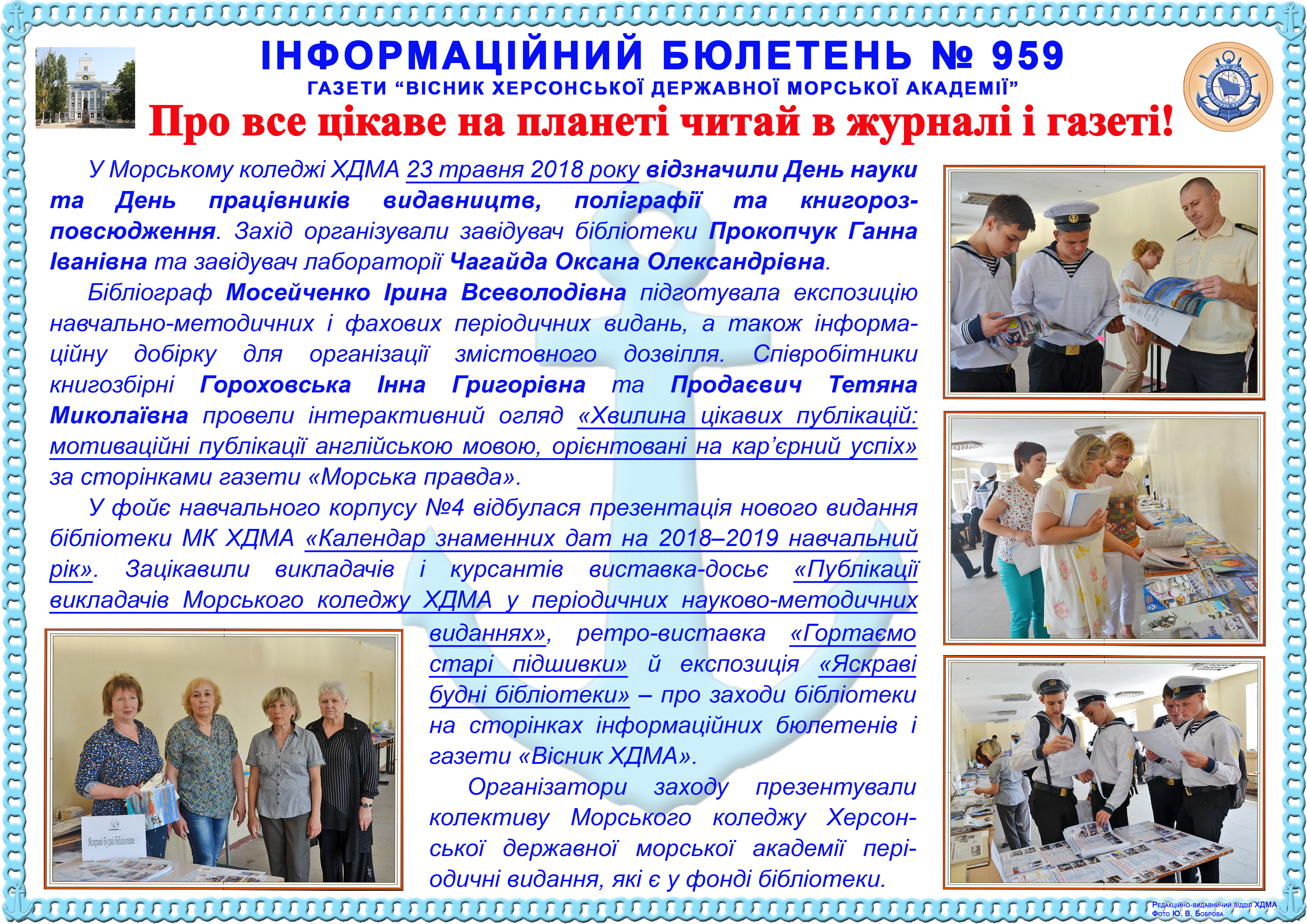 http://repnew.ksma.ks.ua/jspui/handle/123456789/2094| Title: | Інформаційний бюлетень № 959 Про все цікаве на планеті читай в журналі і газеті! |