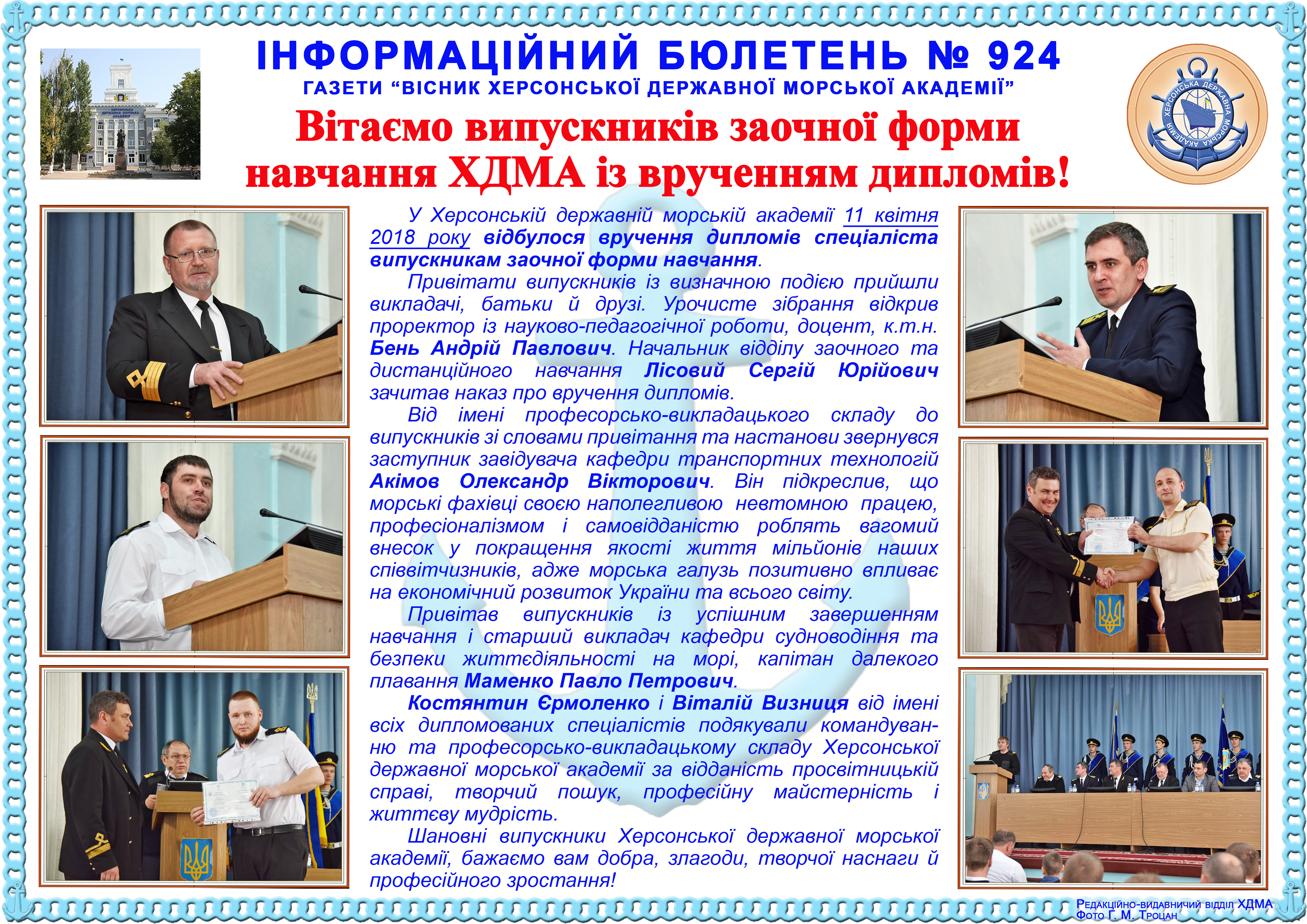http://repnew.ksma.ks.ua/jspui/handle/123456789/2130| Title: | Інформаційний бюлетень № 924 Вітаємо випускників заочної форми навчання ХДМА із врученням дипломів! |