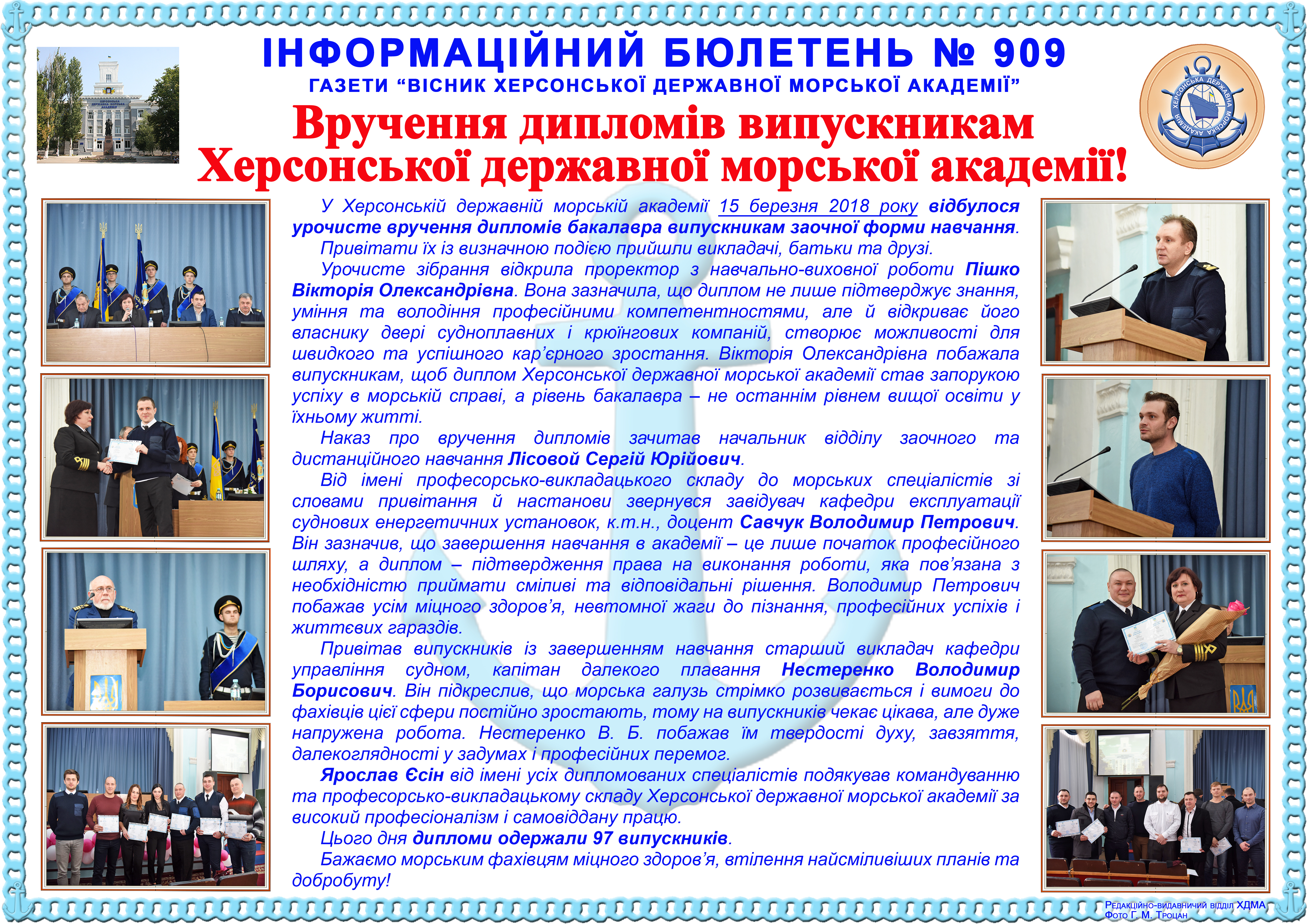 Title: Інформаційний бюлетень № 909 Вручення дипломів випускникам Херсонської державної морської академії!