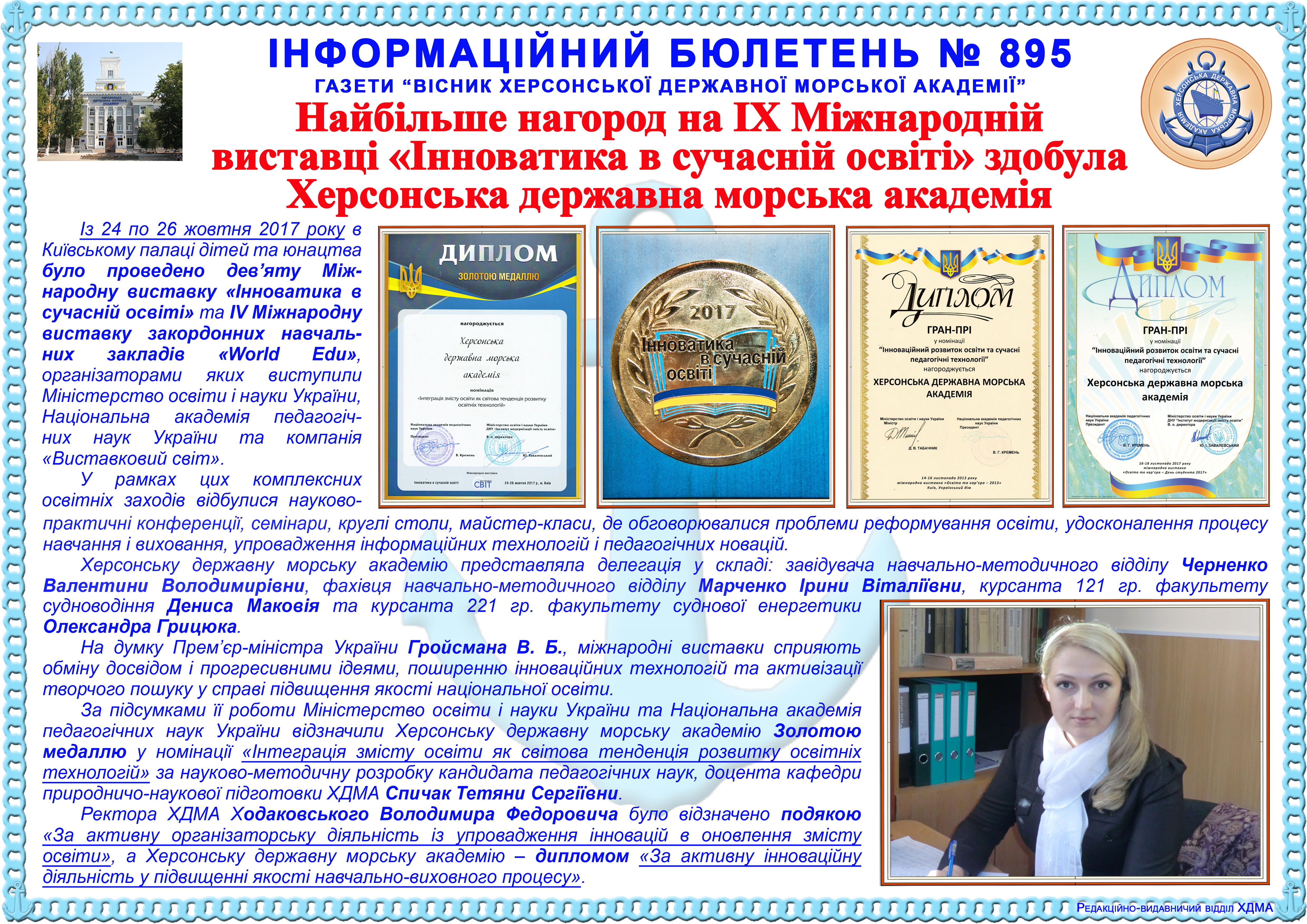 Title: Інформаційний бюлетень № 895 Найбільше нагород на IX Міжнародній виставці «Інноватика в сучасній освіті» здобула Херсонська державна морська академія