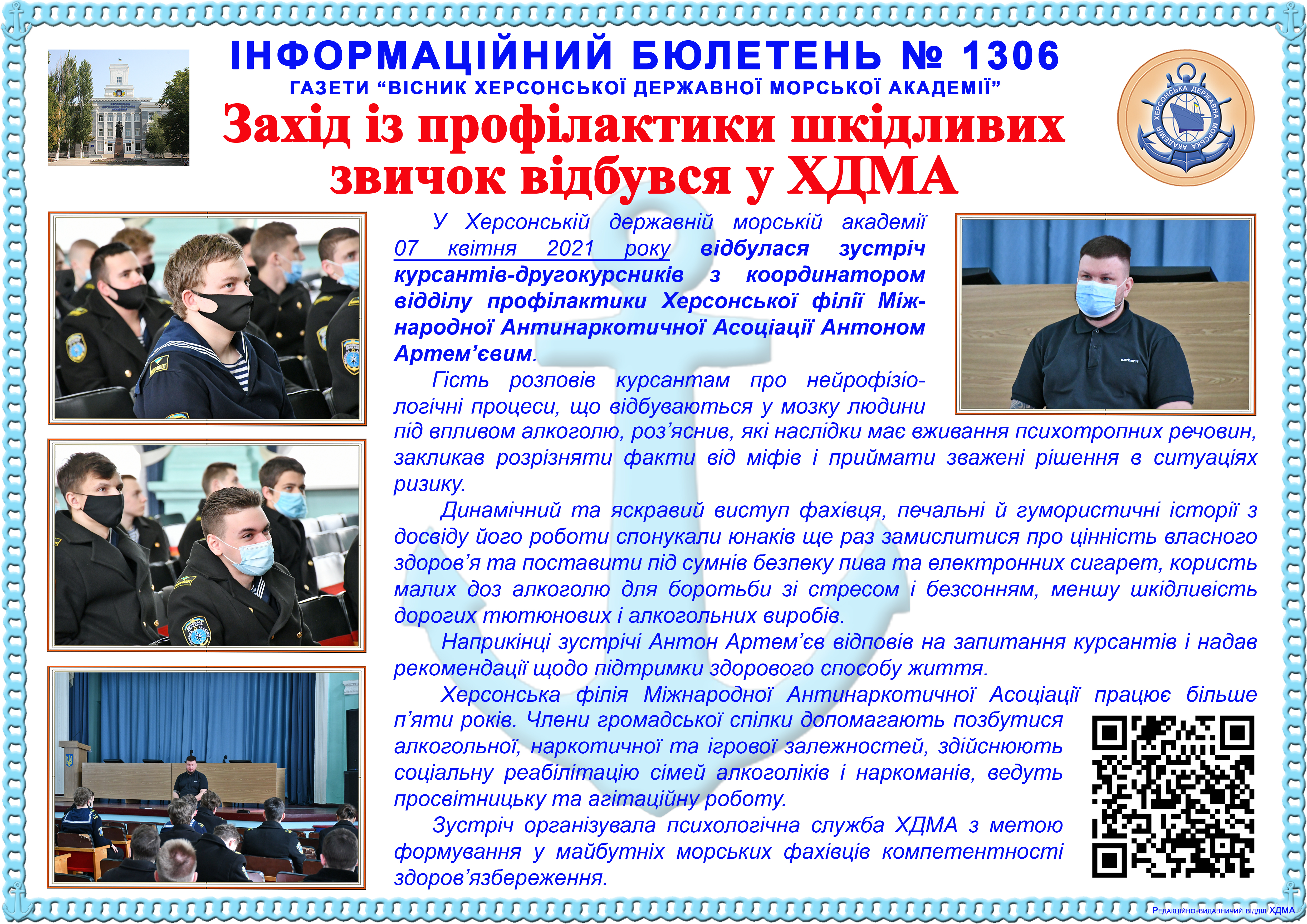 http://repnew.ksma.ks.ua/jspui/handle/123456789/2164| Title: | Інформаційний бюлетень № 1306 Захід із профілактики шкідливих звичок відбувся у ХДМА |