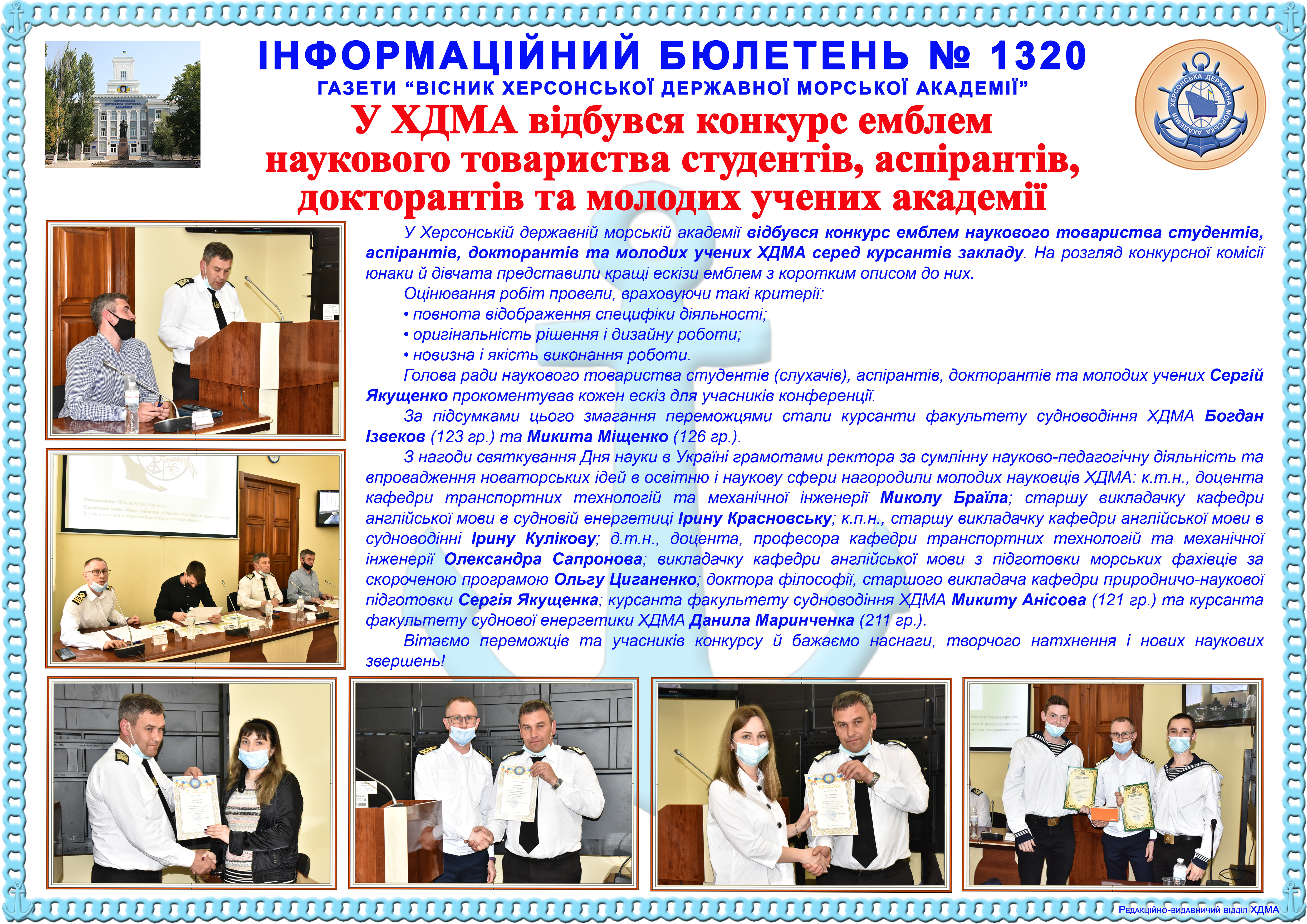 http://repnew.ksma.ks.ua/jspui/handle/123456789/2245| Title: | Інформаційний бюлетень № 1320 У ХДМА відбувся конкурс емблем наукового товариства студентів, аспірантів, докторантів та молодих учених академії |