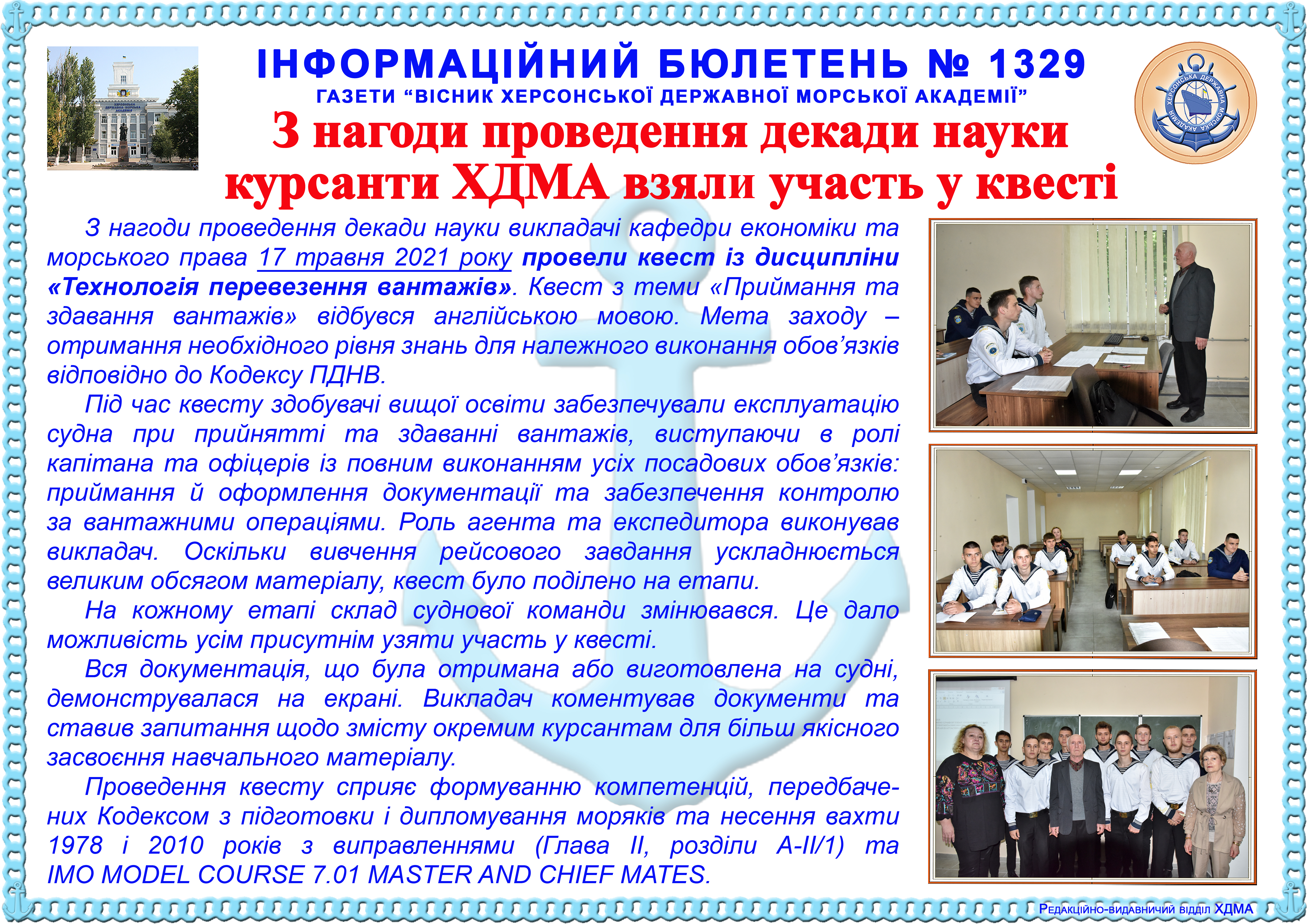 Title: Інформаційний бюлетень № 1329 З нагоди проведення декади науки курсанти ХДМА взяли участь у квесті