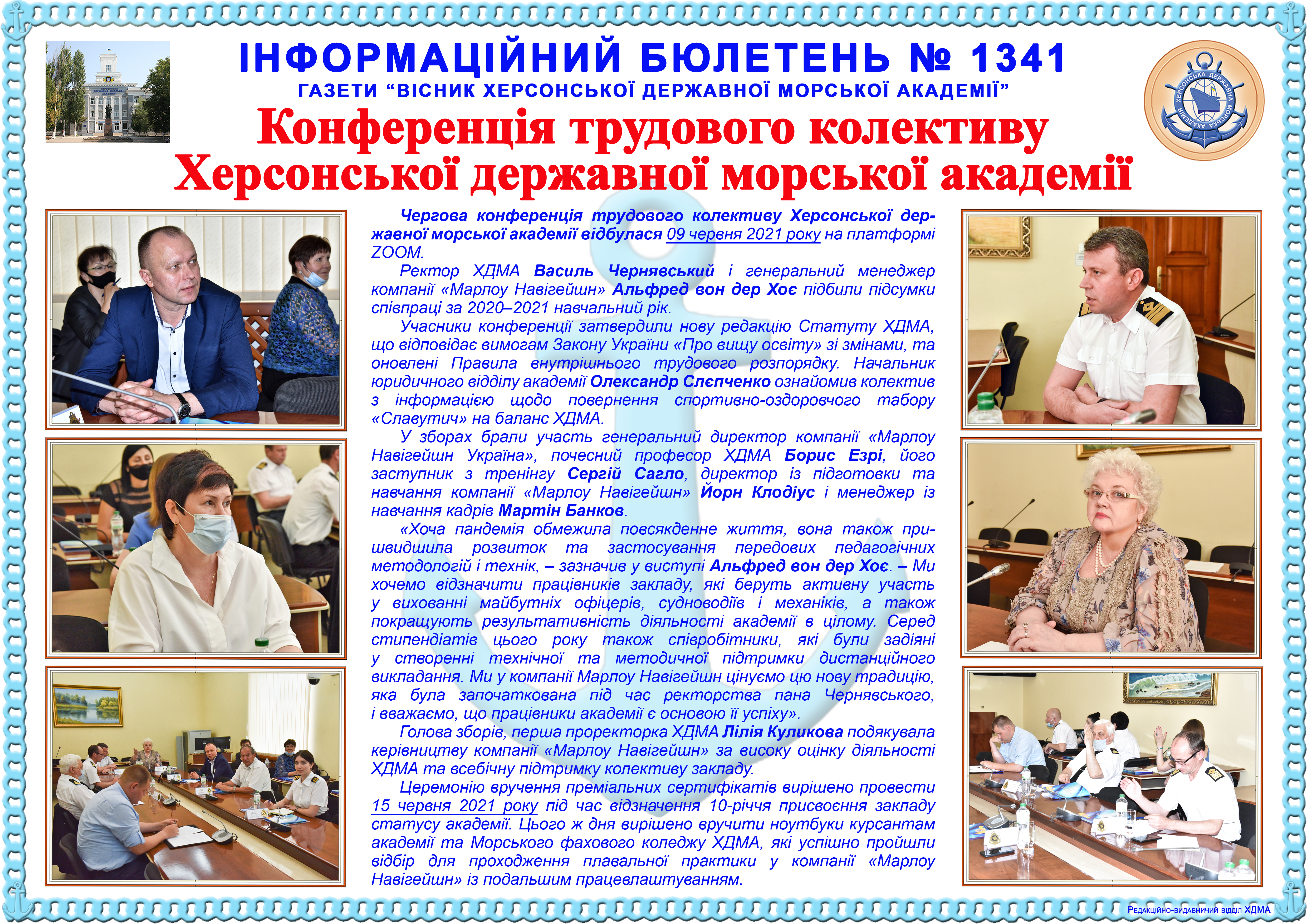 http://repnew.ksma.ks.ua/jspui/handle/123456789/2264| Title: | Інформаційний бюлетень № 1341 Конференція трудового колективу Херсонської державної морської академії |