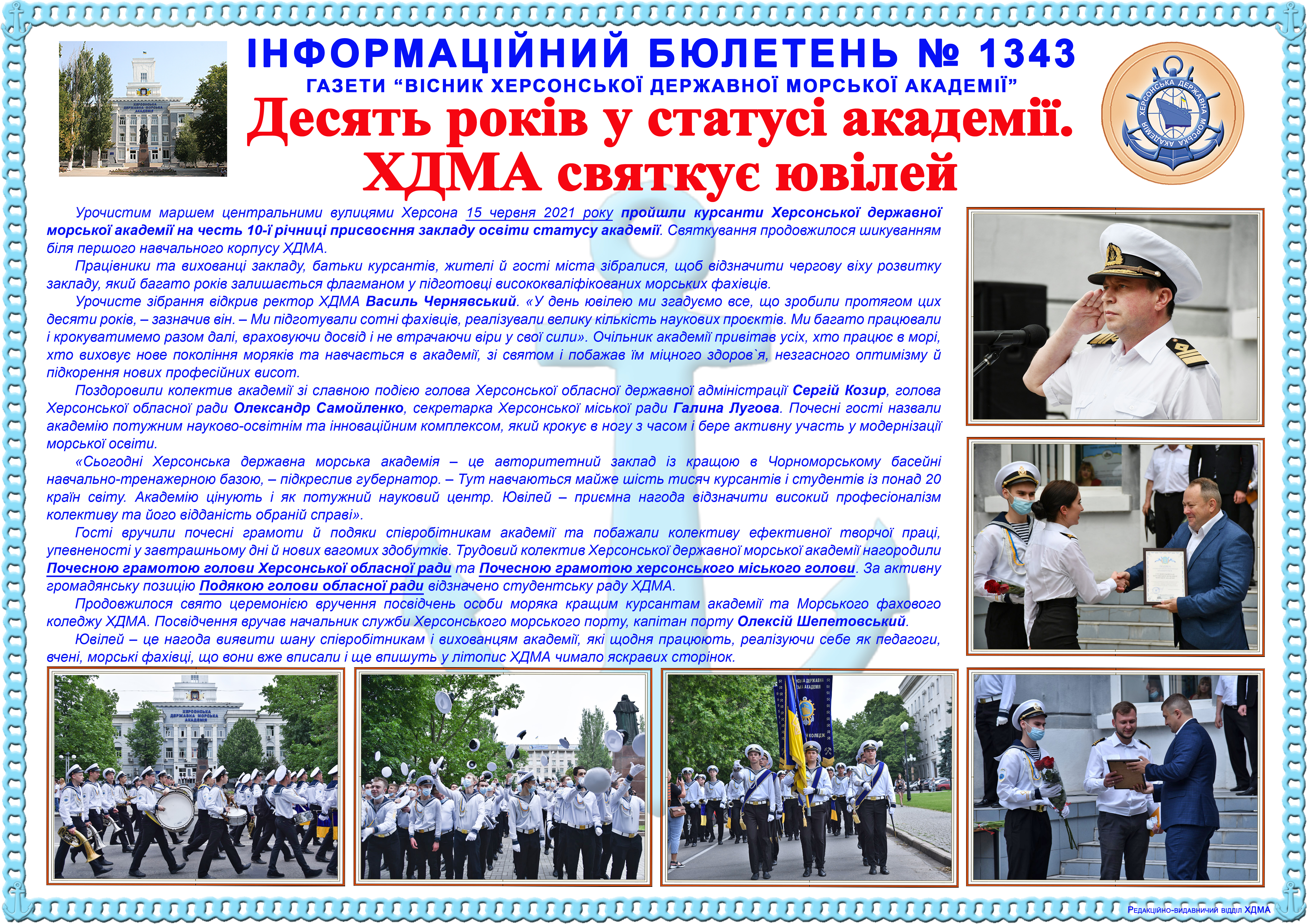 http://repnew.ksma.ks.ua/jspui/handle/123456789/2266| Title: | Інформаційний бюлетень № 1343 Десять років у статусі академії. ХДМА святкує ювілей |