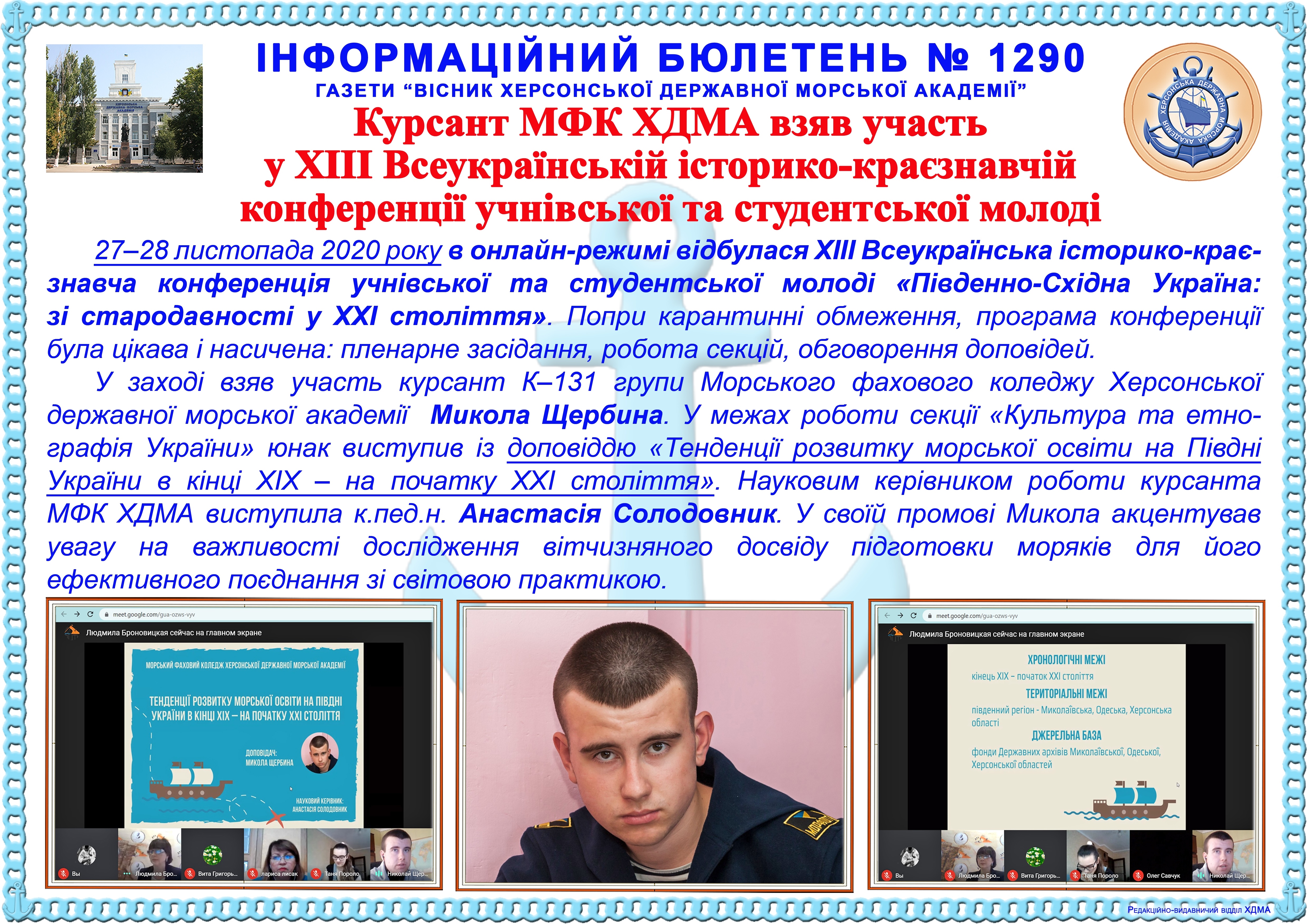 Title: Інформаційний бюлетень № 1290 Курсант МФК ХДМА взяв участь у ХІІІ Всеукраїнській історико-краєзнавчій конференції учнівської та студентської молоді