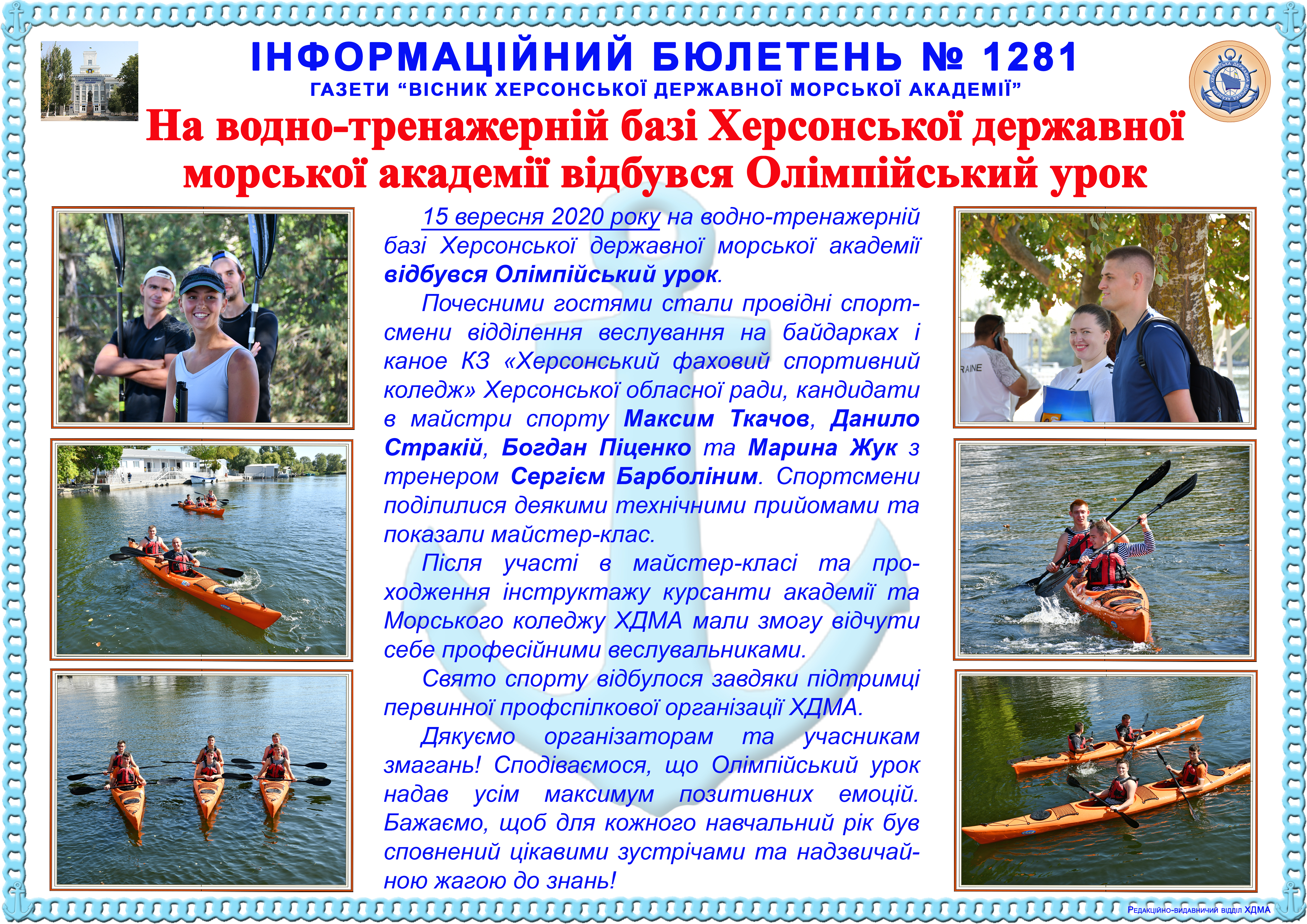 Title: Інформаційний бюлетень № 1281 На водно-тренажерній базі Херсонської державної морської академії відбувся Олімпійський урок