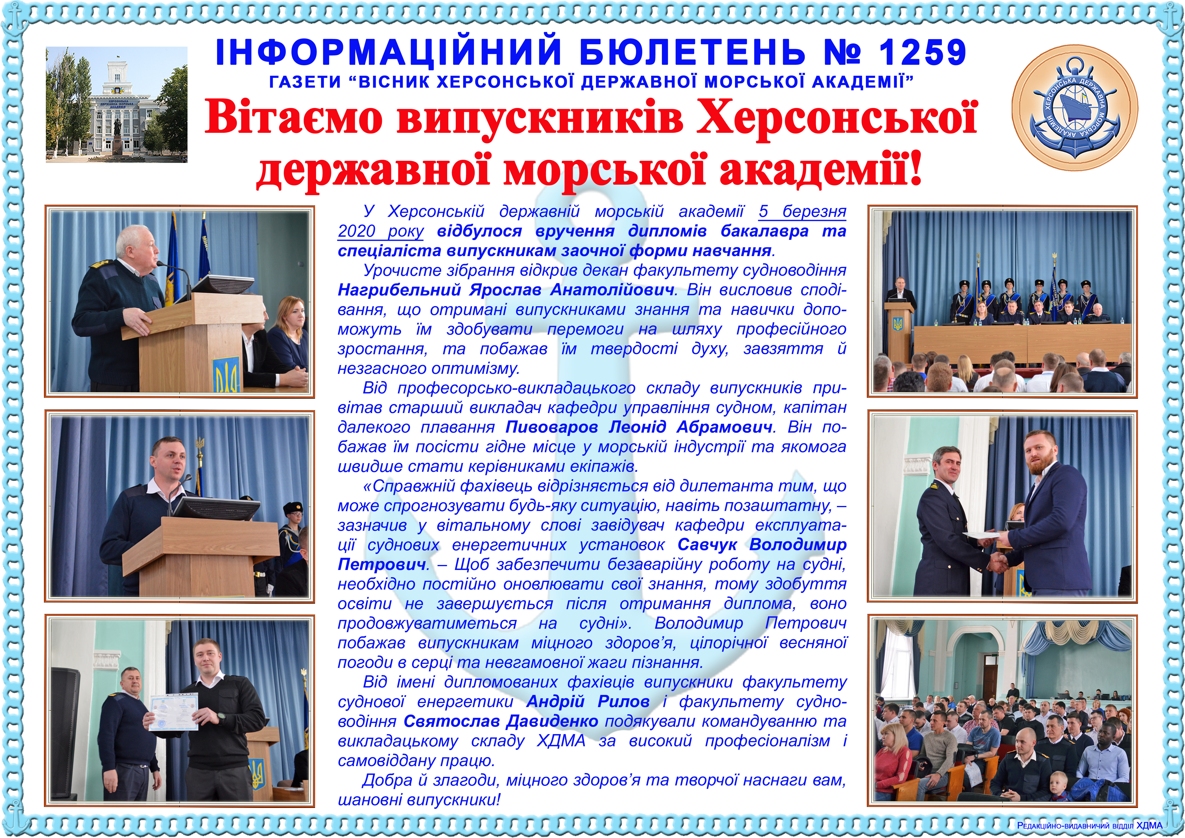 Title: Інформаційний бюлетень № 1259 Вітаємо випускників Херсонської державної морської академії!