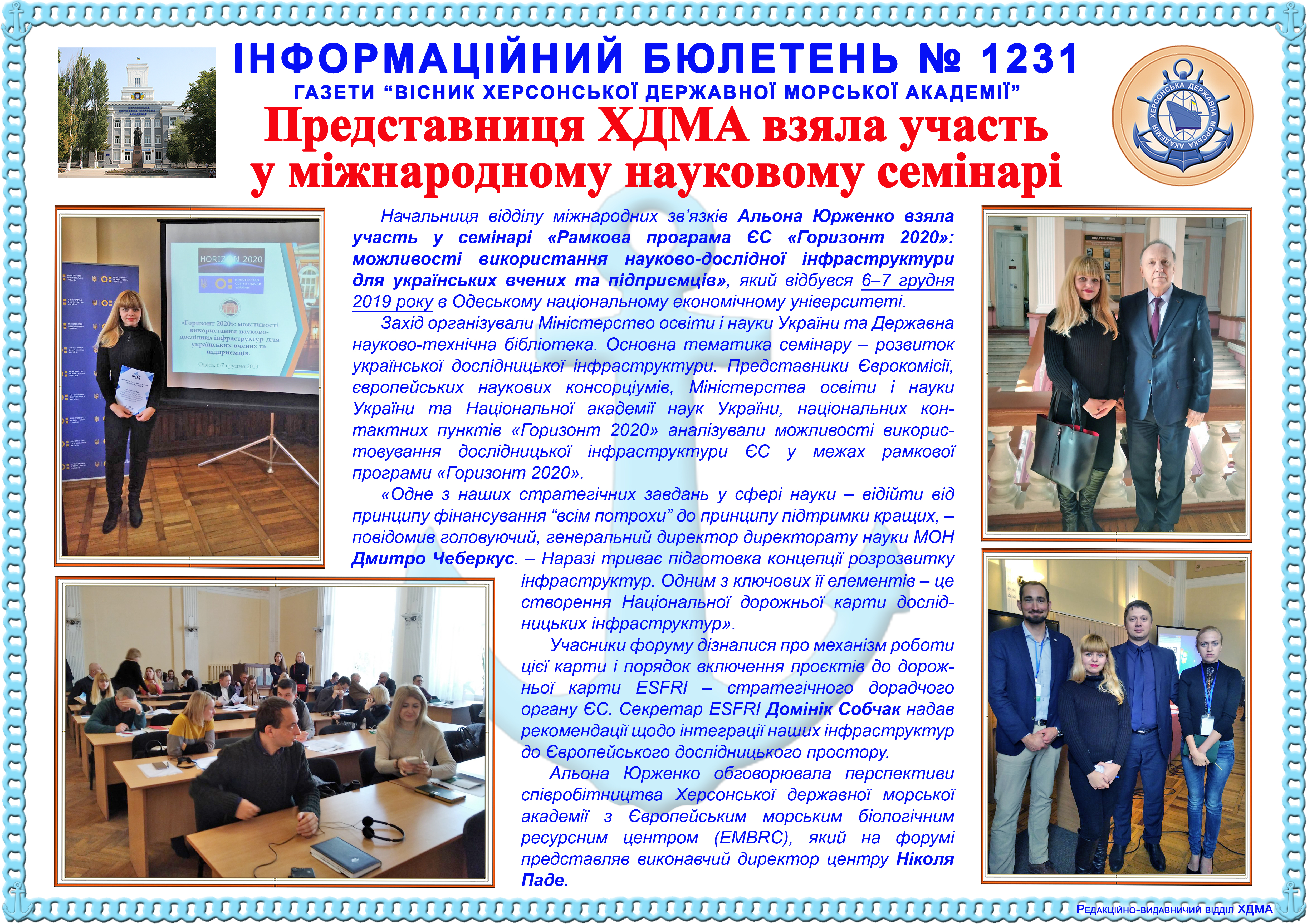 http://repnew.ksma.ks.ua/jspui/handle/123456789/1760| Title: | Інформаційний бюлетень № 1231 Представниця ХДМА взяла участь у міжнародному науковому семінарі |