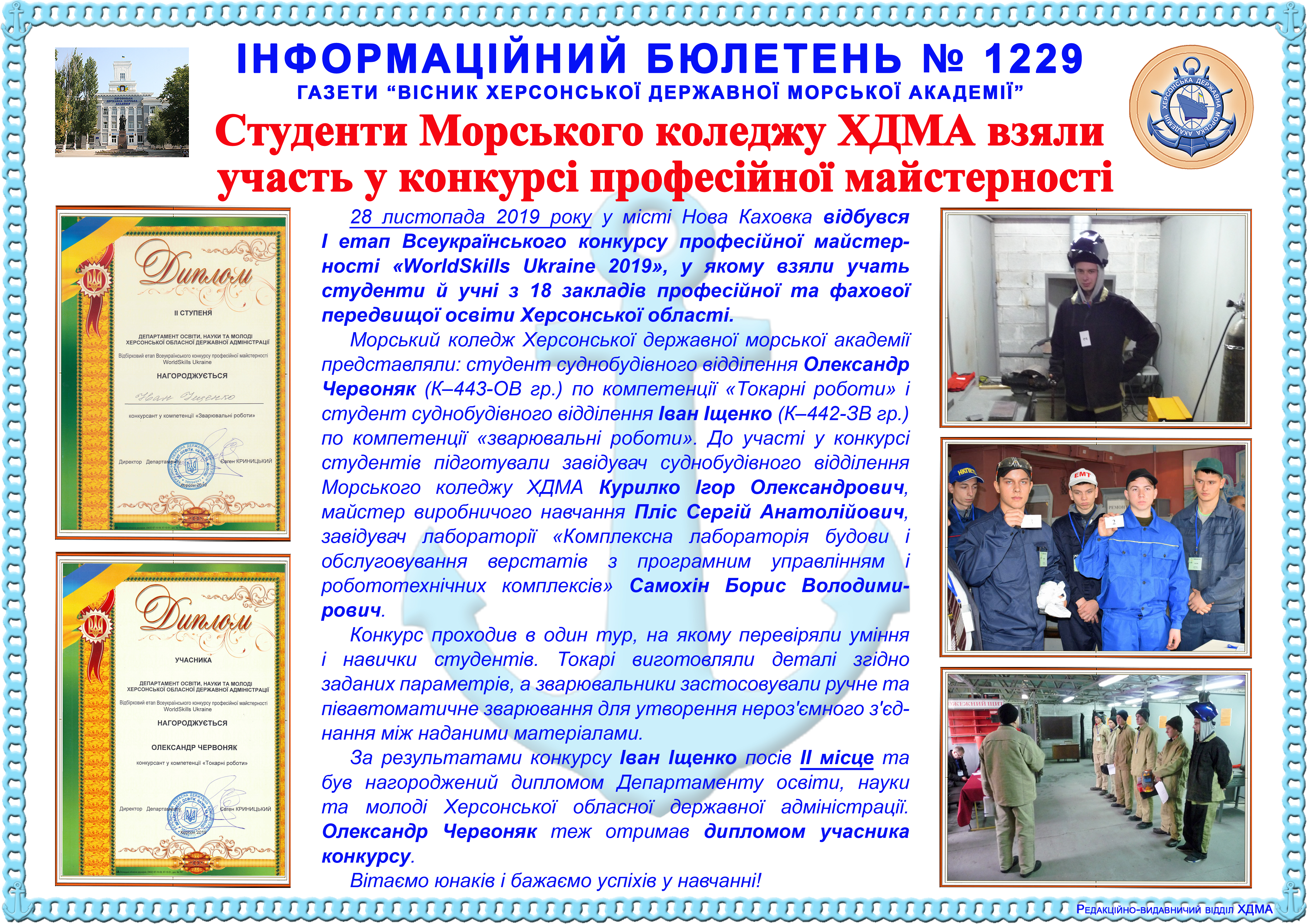 Title: Інформаційний бюлетень № 1229 Студенти Морського коледжу ХДМА взяли участь у конкурсі професійної майстерності