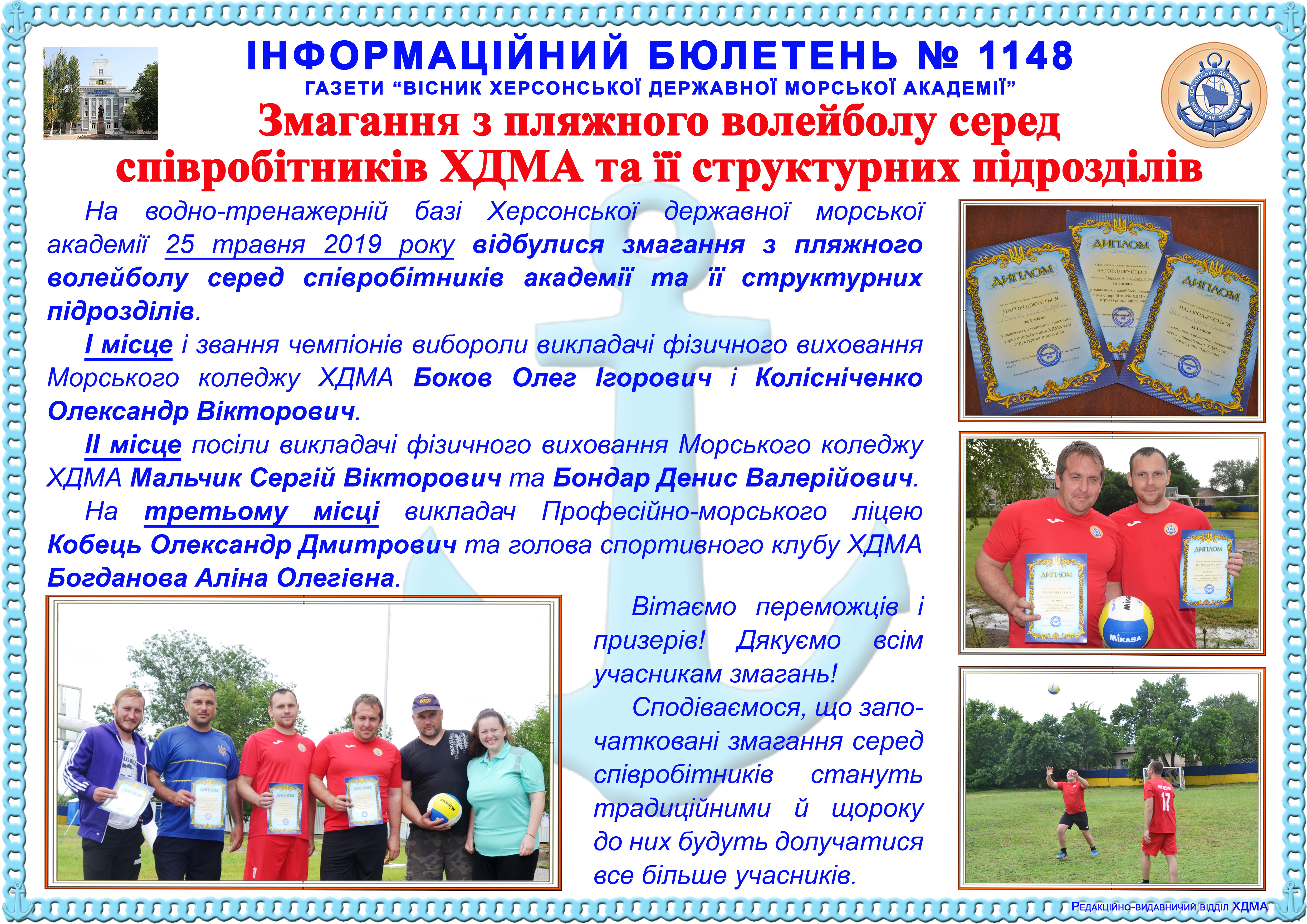 Title: Інформаційний бюлетень № 1148 Змагання з пляжного волейболу серед співробітників ХДМА та її структурних підрозділів