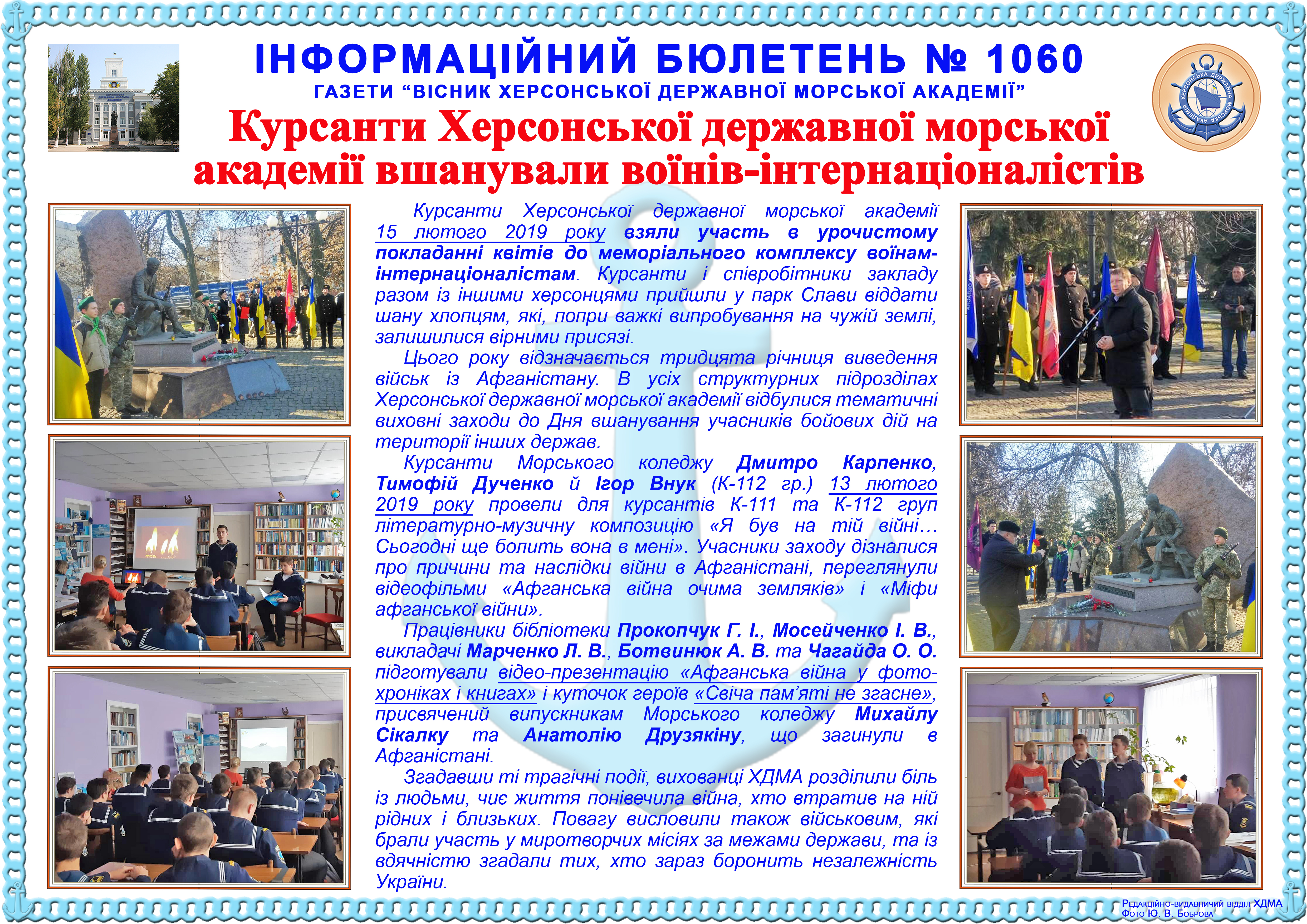 Title: Інформаційний бюлетень № 1060 Курсанти Херсонської державної морської академії вшанували воїнів-інтернаціоналістів