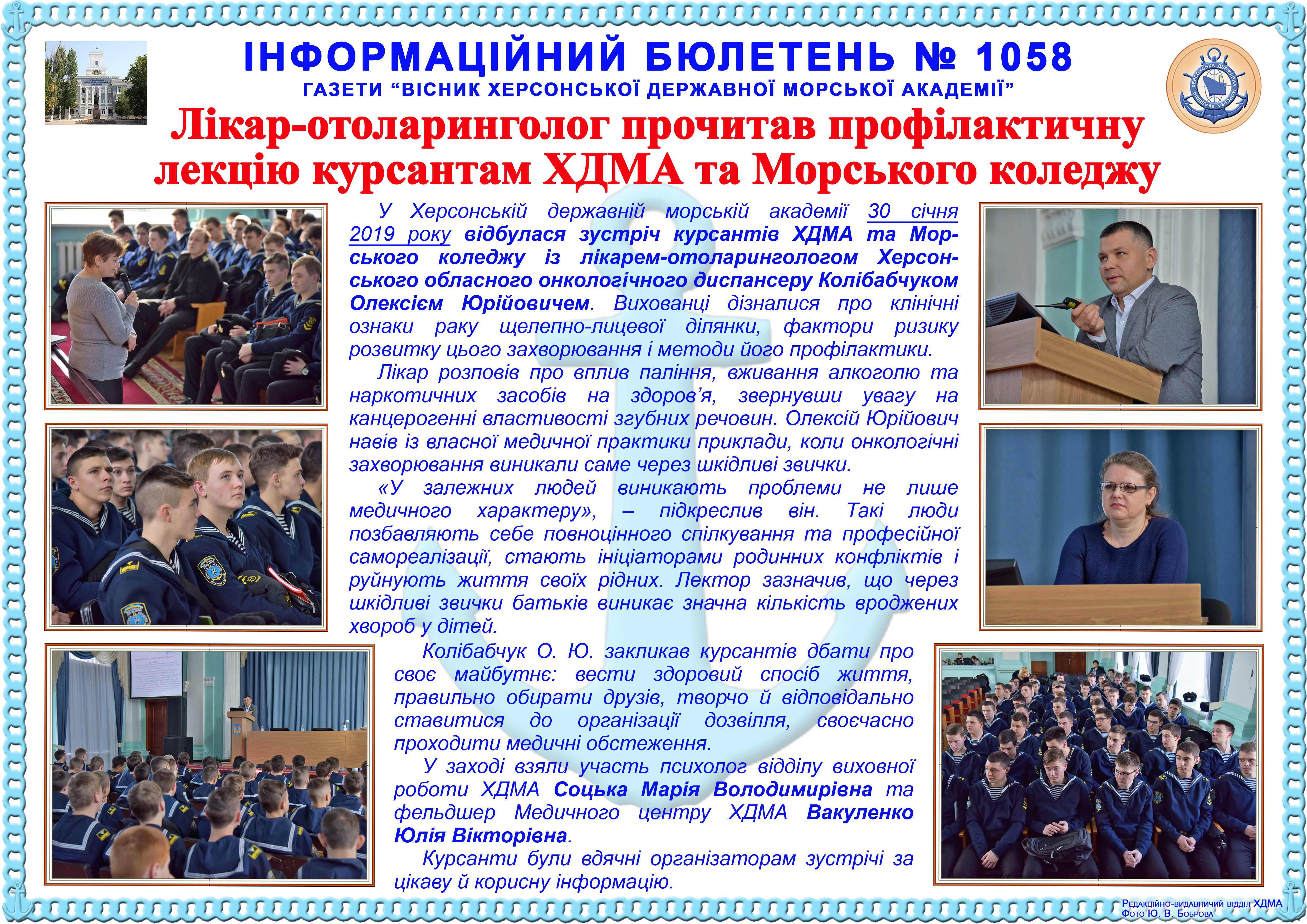 Title: Інформаційний бюлетень № 1058 Лікар-отоларинголог прочитав профілактичну лекцію курсантам ХДМА та Морського коледжу
