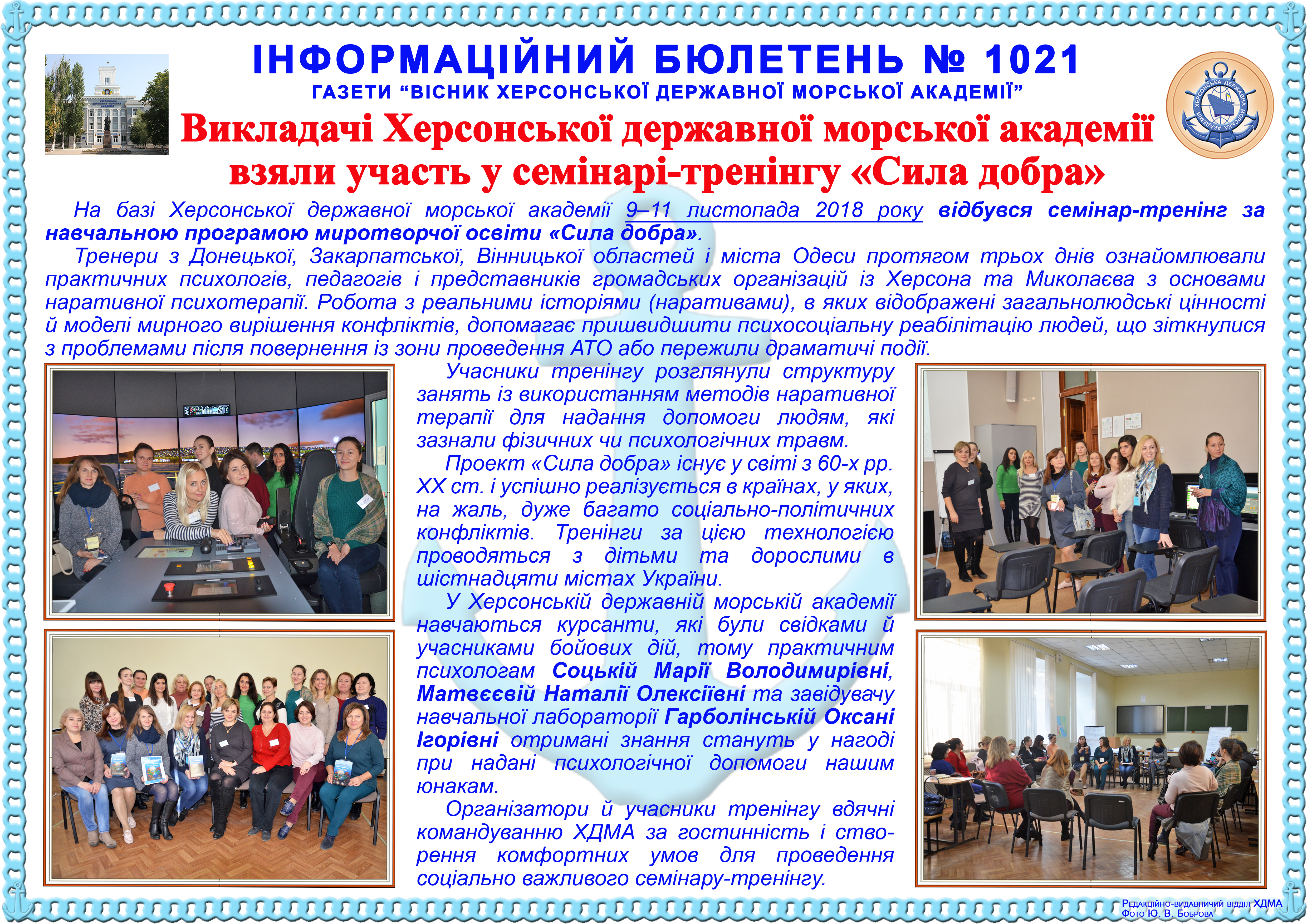 Title: Інформаційний бюлетень № 1021 Викладачі Херсонської державної морської академії взяли участь у семінарі-тренінгу «Сила добра»