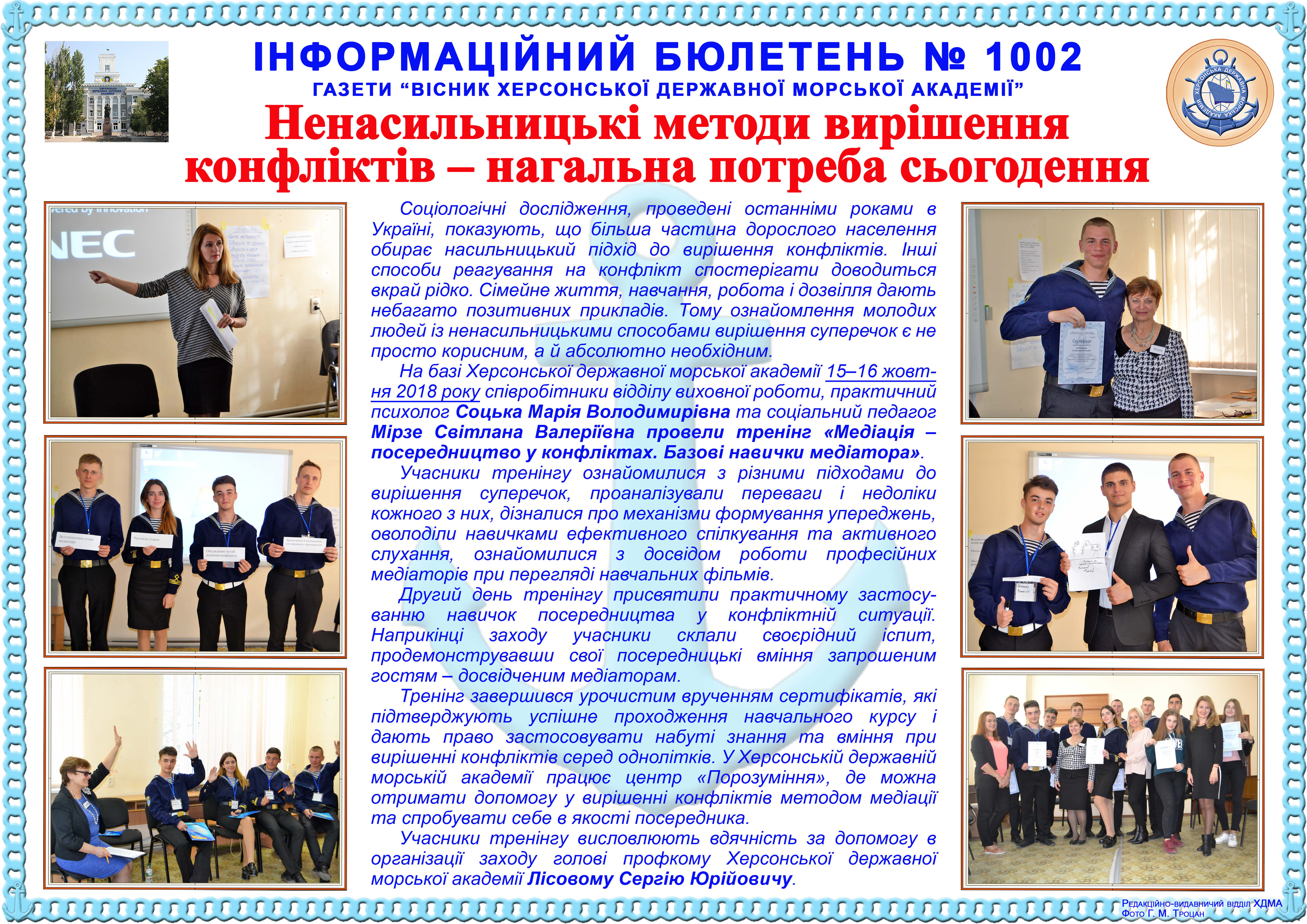 Title: Інформаційний бюлетень № 1002 Ненасильницькі методи вирішення конфліктів – нагальна потреба сьогодення