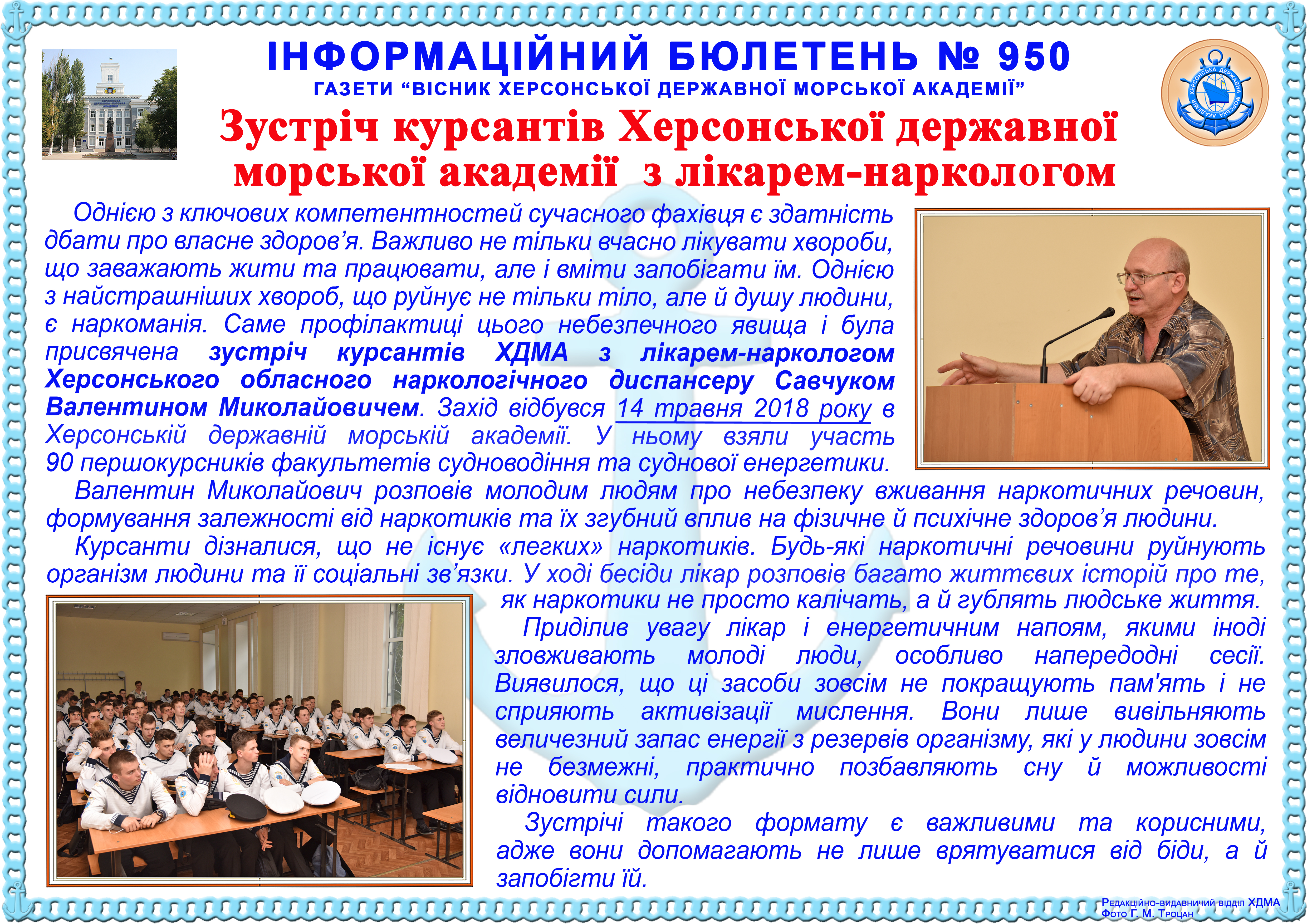 Title: Інформаційний бюлетень № 950 Зустріч курсантів Херсонської державної морської академії з лікарем-наркологом