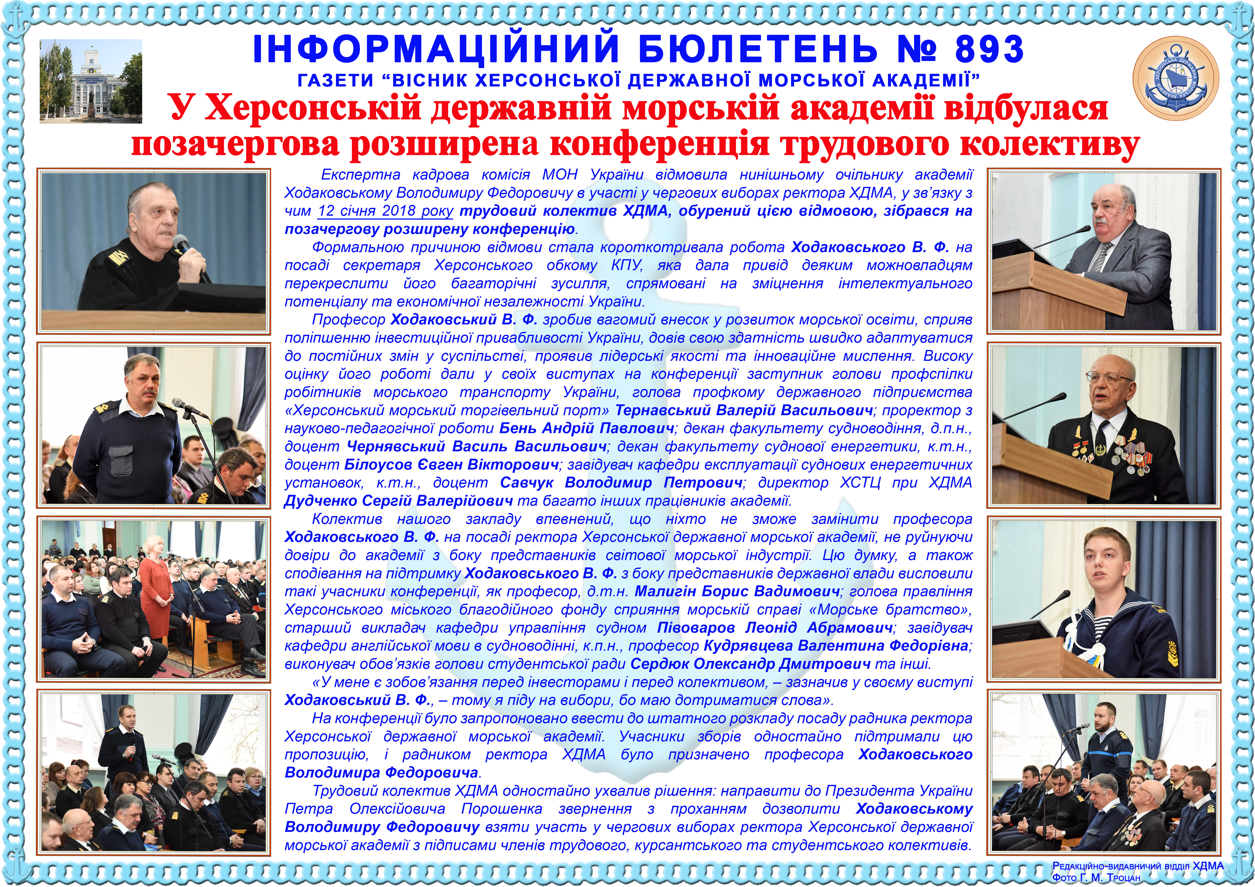 Title: Інформаційний бюлетень № 893 У Херсонській державній морській академії відбулася позачергова розширена конференція трудового колективу