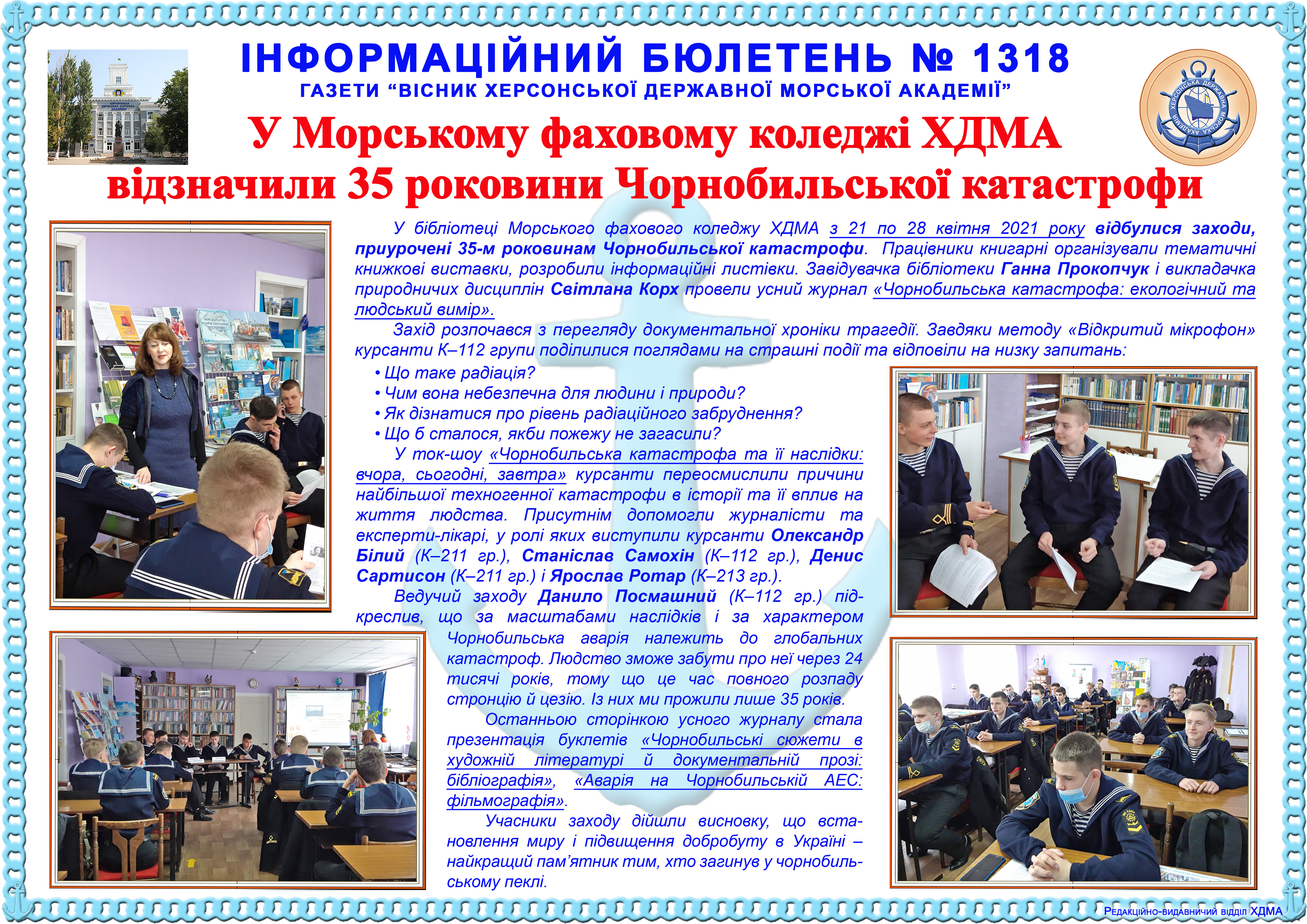 Title: Інформаційний бюлетень №1318 У Морському фаховому коледжі ХДМА відзначили 35 роковини Чорнобильської катастрофи